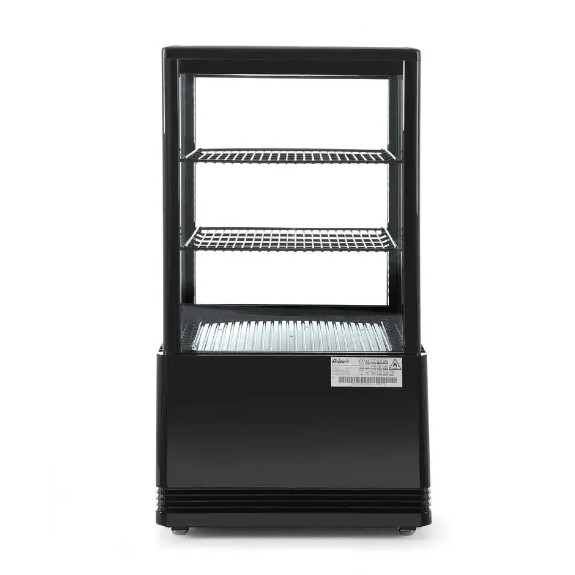 Deze uitvoering is vervaardigd uit ABS en PVC, voorzien van dubbel glas. Koelunit behuizing van ABS. Geforceerde luchtkoeling met automatische ontdooiing, compressor geplaatst onder de koelruimte. Luchtkanaal buiten het glas blaast lucht over het glas om condens te verwijderen en te voorkomen. Duurzame planken met PVC-coating, in hoogte verstelbaar. Met heldere LED-verlichting in het plafond. Digitale temperatuurregelaar en display. Klimaatklasse: 4.