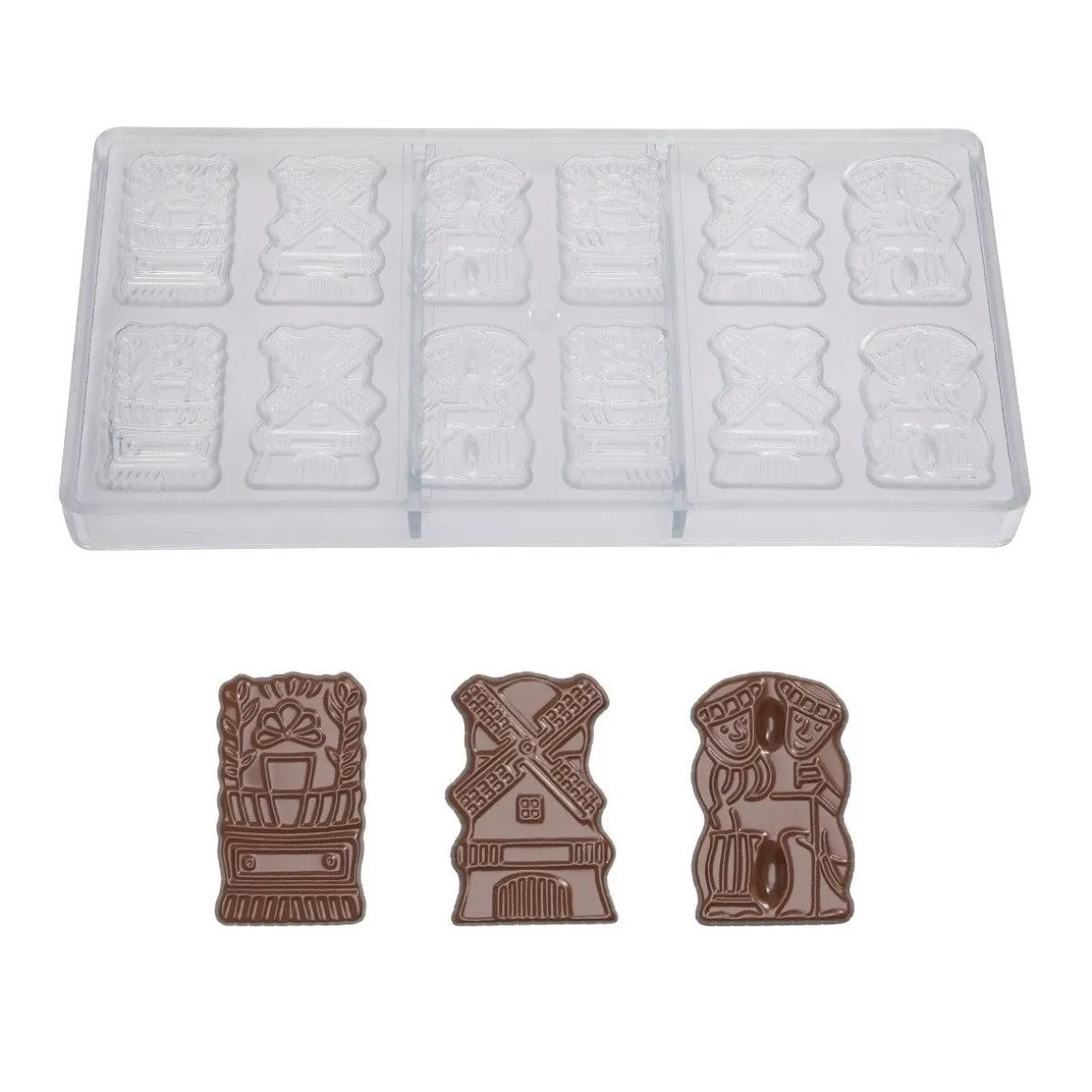 Chocolade vorm van het bekende merk Chocolate World. In totaal kunnen er 12 (2×6) chocolade-figuren uit de vorm worden gehaald.