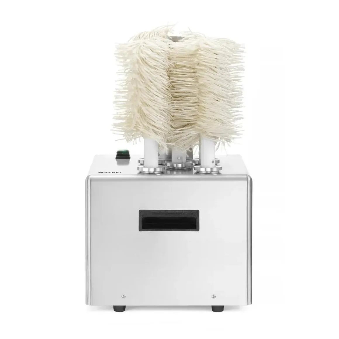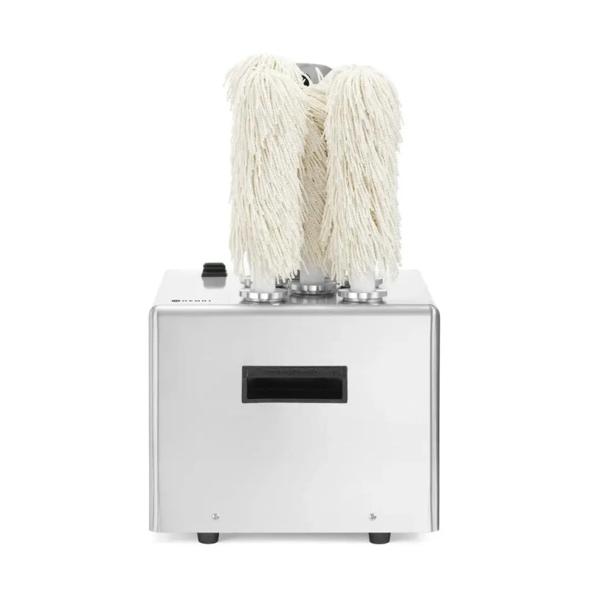 De HENDI Poleermachine voor glazen droogt en poleert moeiteloos pas gewassen glazen. Hij wordt geleverd met 5 verwijderbare borstels met microvezelharen voor extra poleerkracht. De borstels verwijderen watervlekken in een mum van tijd en kunnen tot 330 glazen per uur poleren.