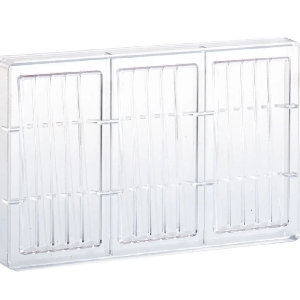 Met de vorm kun je 3 repen tegelijk maken. De afmeting van 1 reep is 14,2 bij 6,8 centimeter met een hoogte van 1,2 centimeter.