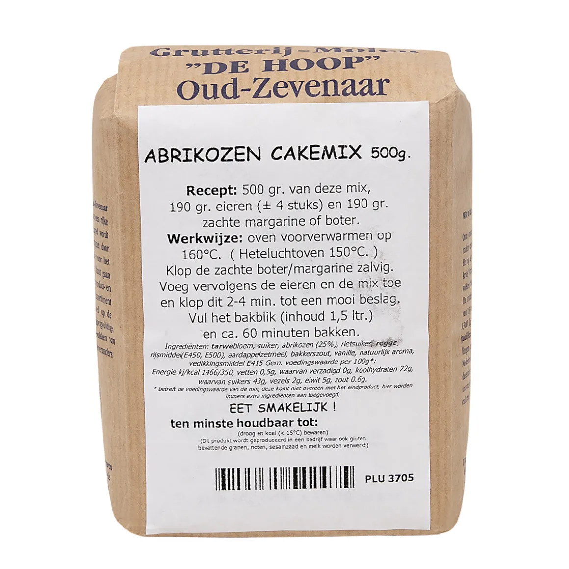 Gek op abrikozen? Probeer dan eens deze Molen de Hoop Abrikozencakemix. Met deze mix maak je een heerlijke frisse cake, gevuld met 25% abrikozenstukjes. Je kunt de cake eventueel decoreren met heerlijke stukjes verse abrikoos, amandelspijs of abrikozenjam om er een feestelijk tintje aan te geven.