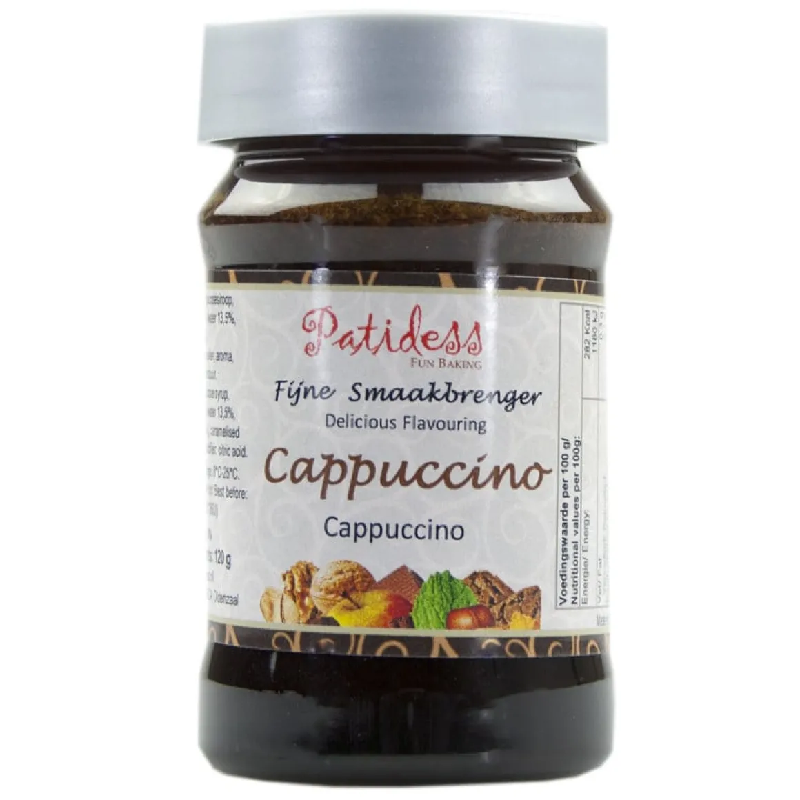 Binnen de patisserie wereld is koffie een veelgebruikte smaakmaker. Voor de echte onmiskenbare koffiesmaak wordt er in recepten vaak gevraagd om instant espresso of koffielikeur. Een goede vervanger hiervoor is de Patidess Smaakpasta Cappuccino. Cappuccino is het mildere broertje van de espresso, het bestaat namelijk uit espresso, aangelengd met warme, gestoomde melk. Patidess Smaakpasta Cappuccino heeft deze milde, romige smaak zonder dat je met (instant) koffie of likeur aan de gang moet. Daarnaast is de smaakmaker ook nog eens heel makkelijk te verwerken. Meng je Patidess Smaakpasta Cappuccino door je beslag, crème of roomkaas voor een verrukkelijke cappuccinocheesecake.