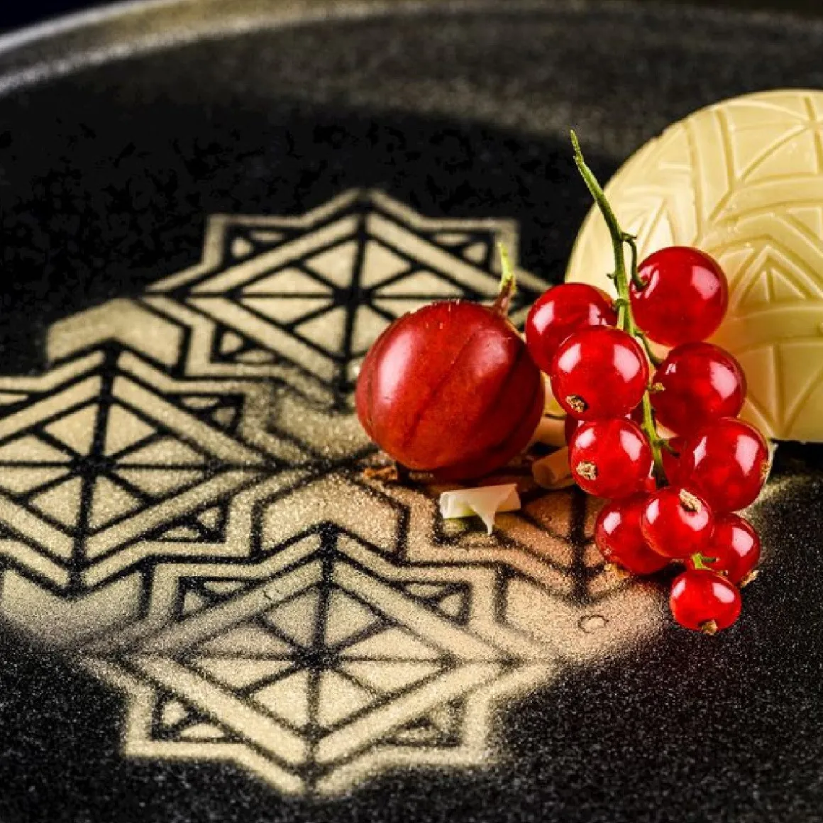 De Plate It Garneermallen Infinity Set/3 bevat 3 onderdelen die je in combinatie met elkaar of juist apart van elkaar kunt gebruiken om de mooiste creaties te maken. Met 1 sjabloon maak je de fantastische decoraties met producten in poedervorm, zoals bloem en poedersuiker. Het tweede sjabloon is perfect voor het creëren van gebakken of bevroren decoraties. Het laatste item uit deze set is een siliconen mal, waarmee je op ieder bord een ware eyecatcher creëert.