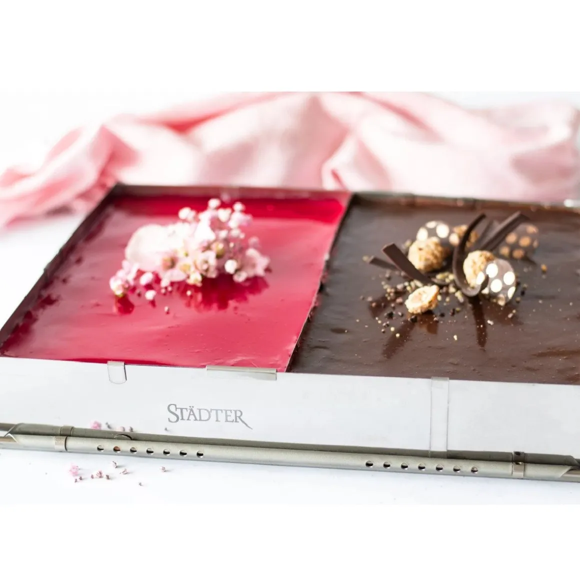 Ideaal voor het maken van schnitt, laaggebak, moussetaarten of cakes in verschillende formaten. De meegeleverde verdeler maakt het mogelijk om twee recepten tegelijk te bereiden, zonder dat smaken zich mengen. Ook bij het opbouwen van meerdere lagen of het storten van bavarois komt dit bakraam perfect van pas.