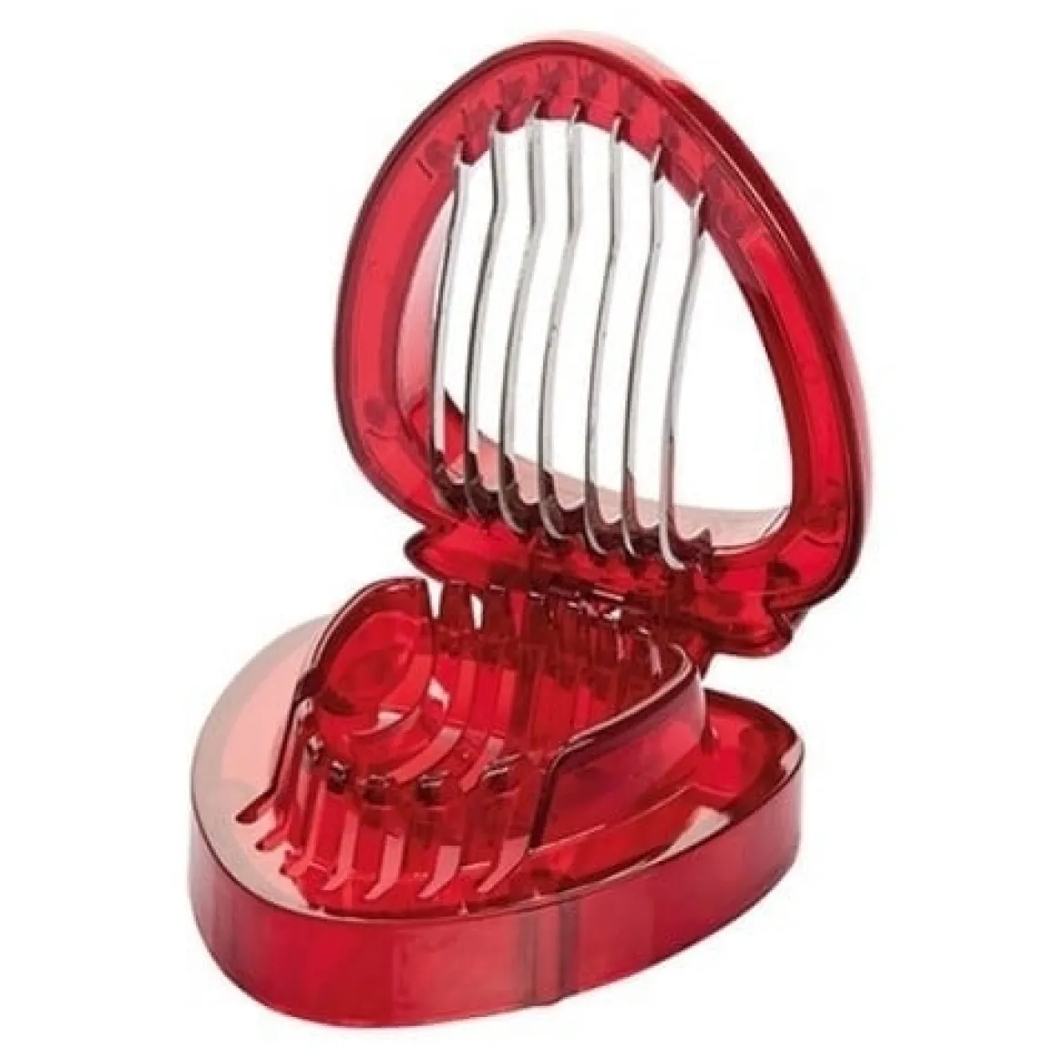 Nooit meer geknoei met het snijden van aardbeien. Met deze handige aardbeien snijder word de aardbei door middel van 7 roestvrijstalen messen in gelijke plakjes gesneden.