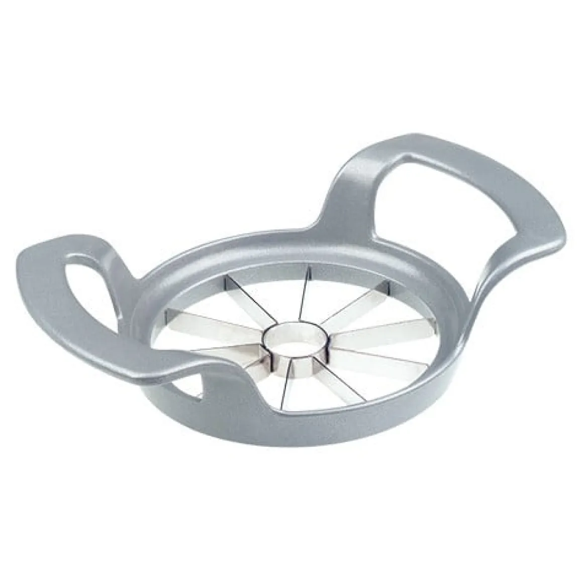 Deze appelverdeler ontpit en verdeelt de appel of peer in 10 gelijke delen. De behuizing is van aluminium en de mesjes zijn van RVS. Deze combinatie zorgt ervoor dat de appelverdeler uiterst gebruiksvriendelijk is, door de handvaten is het kracht zetten geen probleem bij deze appelverdeler.