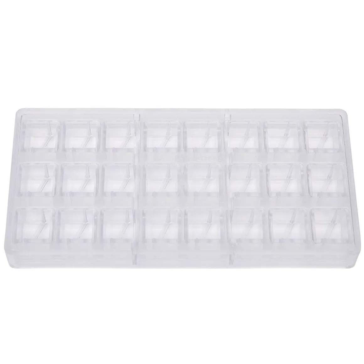 Chocolade bonbonvorm van het bekende merk Chocolate World. In totaal kunnen er 24 (3×8) bonbons uit deze vorm gehaald worden.