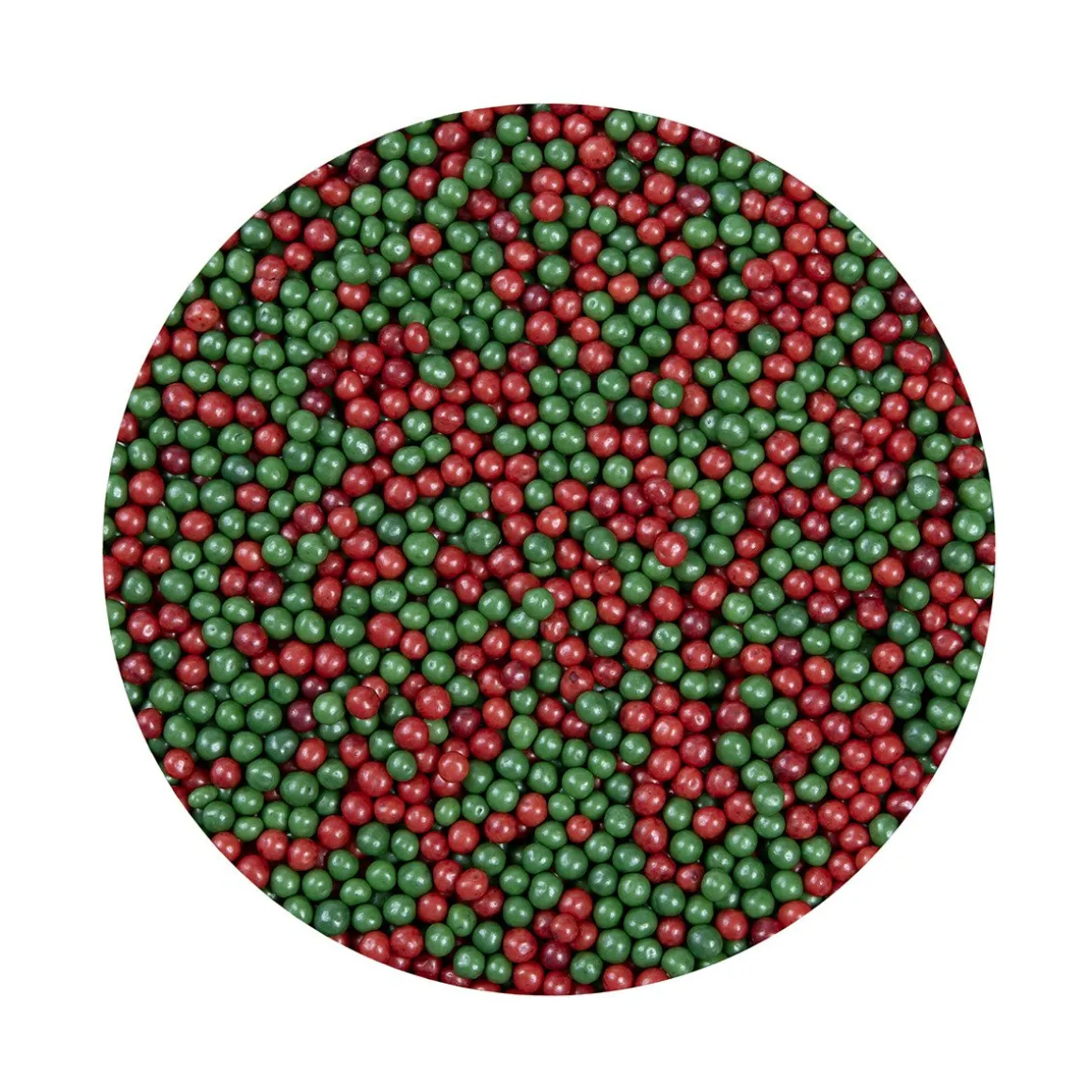 Heerlijke (rood-groene) chocolade crispy parels van het merk Brand New Cake. Crispy parels zijn krokante graankorrels, omhuld door een laagje gekleurde Belgische chocolade. Versier in een handomdraai je gebak, taart of andere lekkernij. Verkrijgbaar in vele kleuren.