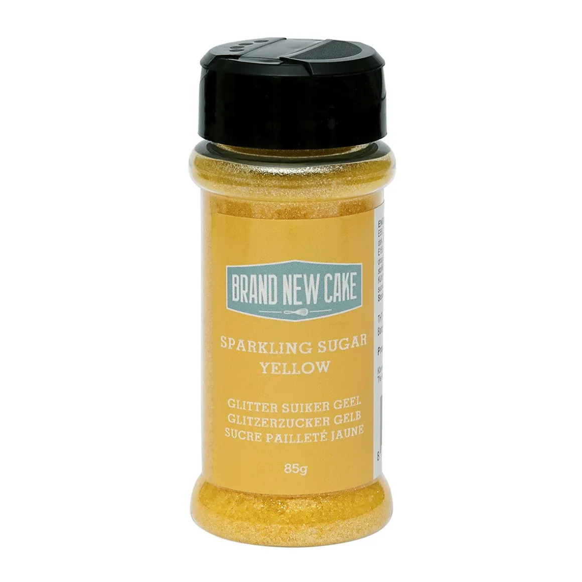 De BrandNewCake Glitter Suiker Geel 85g bevat geel gekleurd suiker met een glitter laag. Een prachtige afwerking op allerlei lekkernijen. Geel is prachtig op zomerse lekkernijen, maar ook op paasbaksels staat de gekleurde suiker fantastisch.