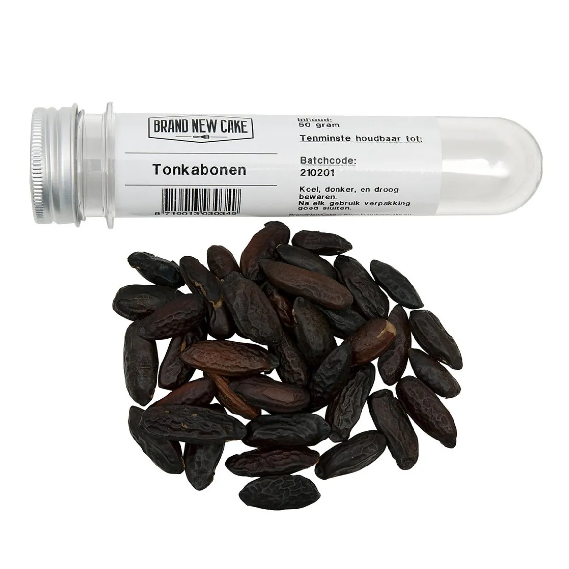 Deze Brand New Cake Tonkabonen zijn er aromatisch. Ze hebben tinten van vanille, rum en amandel voeren de boventoon. Tonkabonen worden 24 uur in de alcohol geweekt en vervolgens gedroogd. Gedurende dit proces vindt er fermentatie plaats, hierdoor komt er een soort grijze waas aan de buitenkant van de boon. Deze grijze waas zijn de courmarine kristallen, dé belangrijkste smaakstof van de tonkaboon.