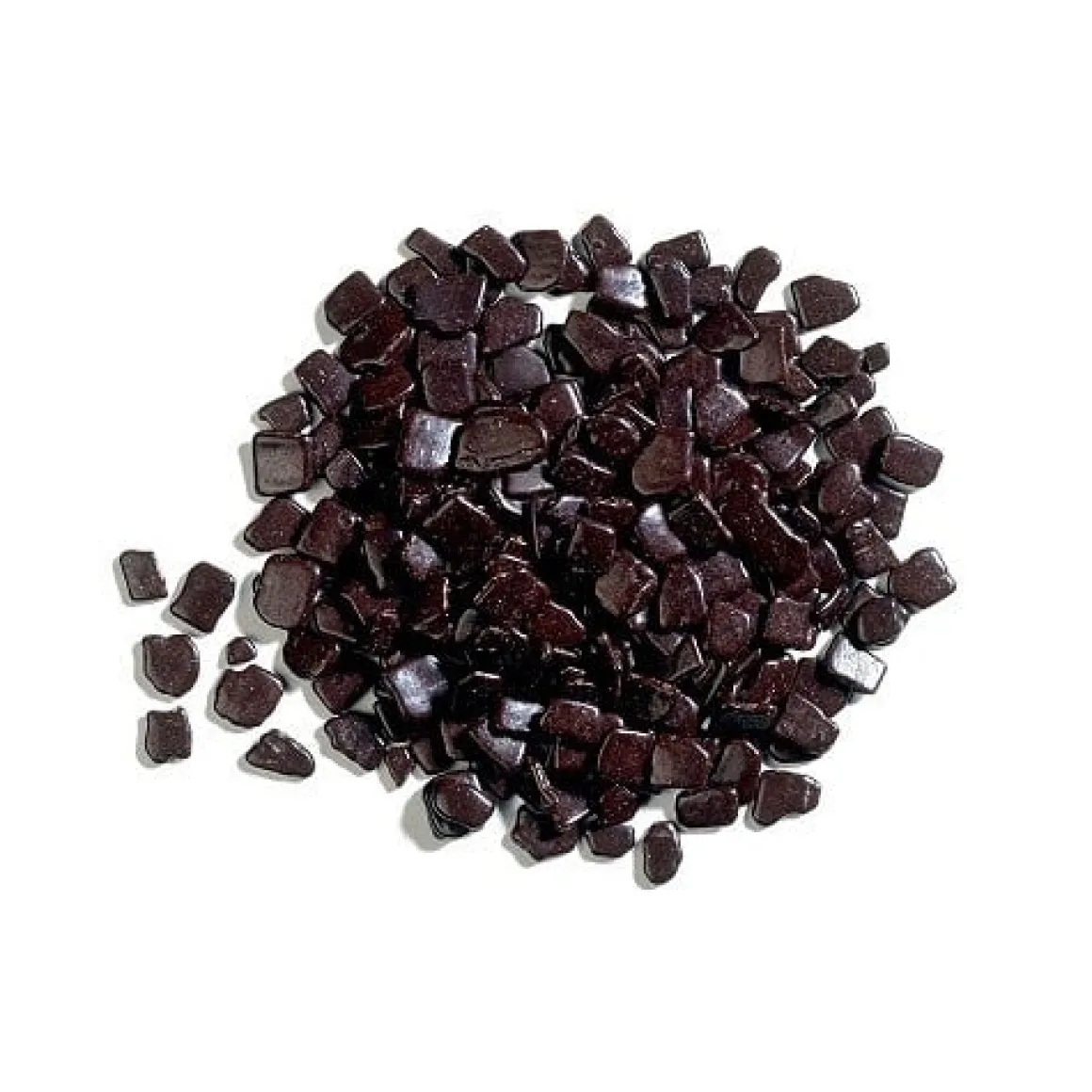 Kleine glimmende, onregelmatige, krokante stukjes chocolade (met een intense smaak). Deze ‘flakes’ worden mooi gepolijst, zonder dat er glansmiddelen aan te pas komen. Strooi de vlokken over creatie om een waanzinnig effect te krijgen!