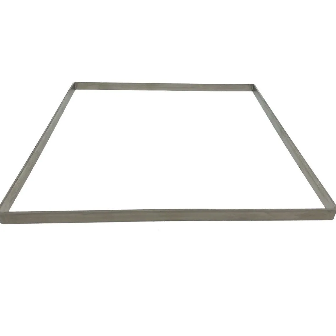 Chocolade kader volledig vervaardigd uit RVS. Deze stevige mal kan worden gebruikt om chocolade in te gieten voor bijvoorbeeld snijbonbons. Dit kader is ook verkrijgbaar in een kleiner formaat.