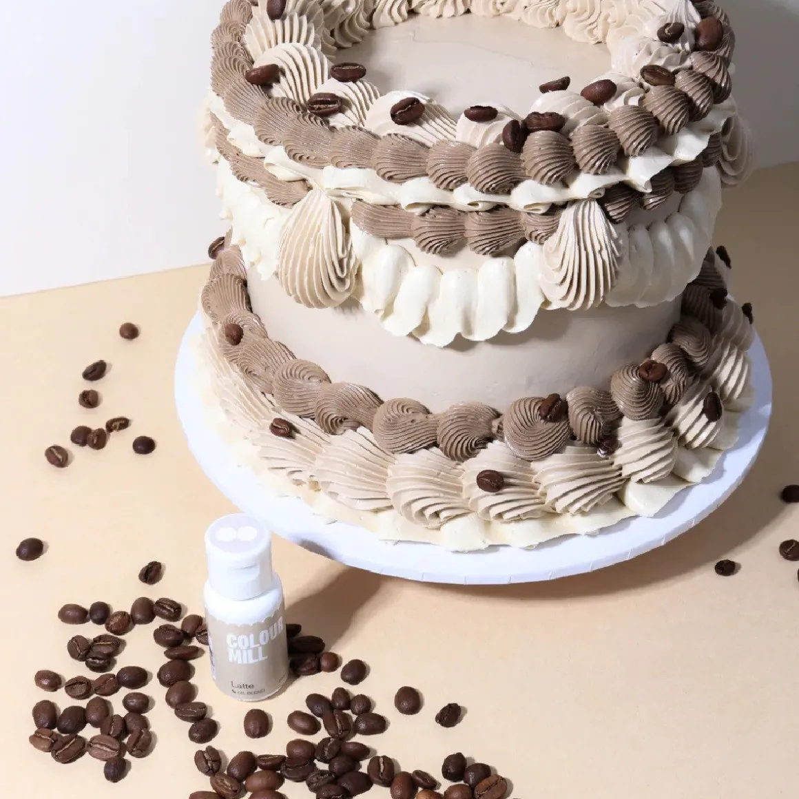 Latte is een veelzijdige kleur die perfect aansluit bij natuurlijke thema’s, maar ook prachtig combineert met koffie- of chocoladesmaken. Bak bijvoorbeeld een heerlijke chocoladebiscuit en kleur de decoraties met deze latte kleurstof, of geef botercrème een zachte tint en gebruik die om koffiecupcakes af te werken.
