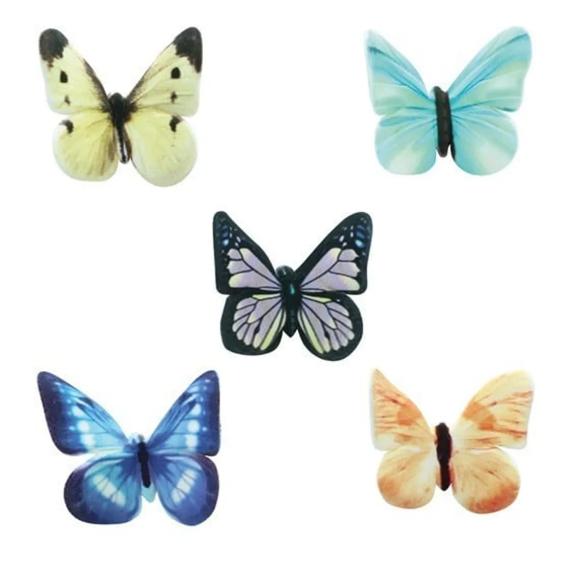 Deze prachtige vlinders zijn gemaakt van fondant en hebben een lichte zoete vanillesmaak. Ze zijn perfect om een taart of (cup)cake te decoreren voor bijvoorbeeld een bruiloft, verjaardag of een andere speciale gelegenheid. Door een druppel glazuur of eetbare lijm aan te brengen op de achterkant van de vlinders zijn deze makkelijk te bevestigen aan de boven of zijkant van bijvoorbeeld een taart. De vlinders hebben 5 verschillende designs en kleuren.