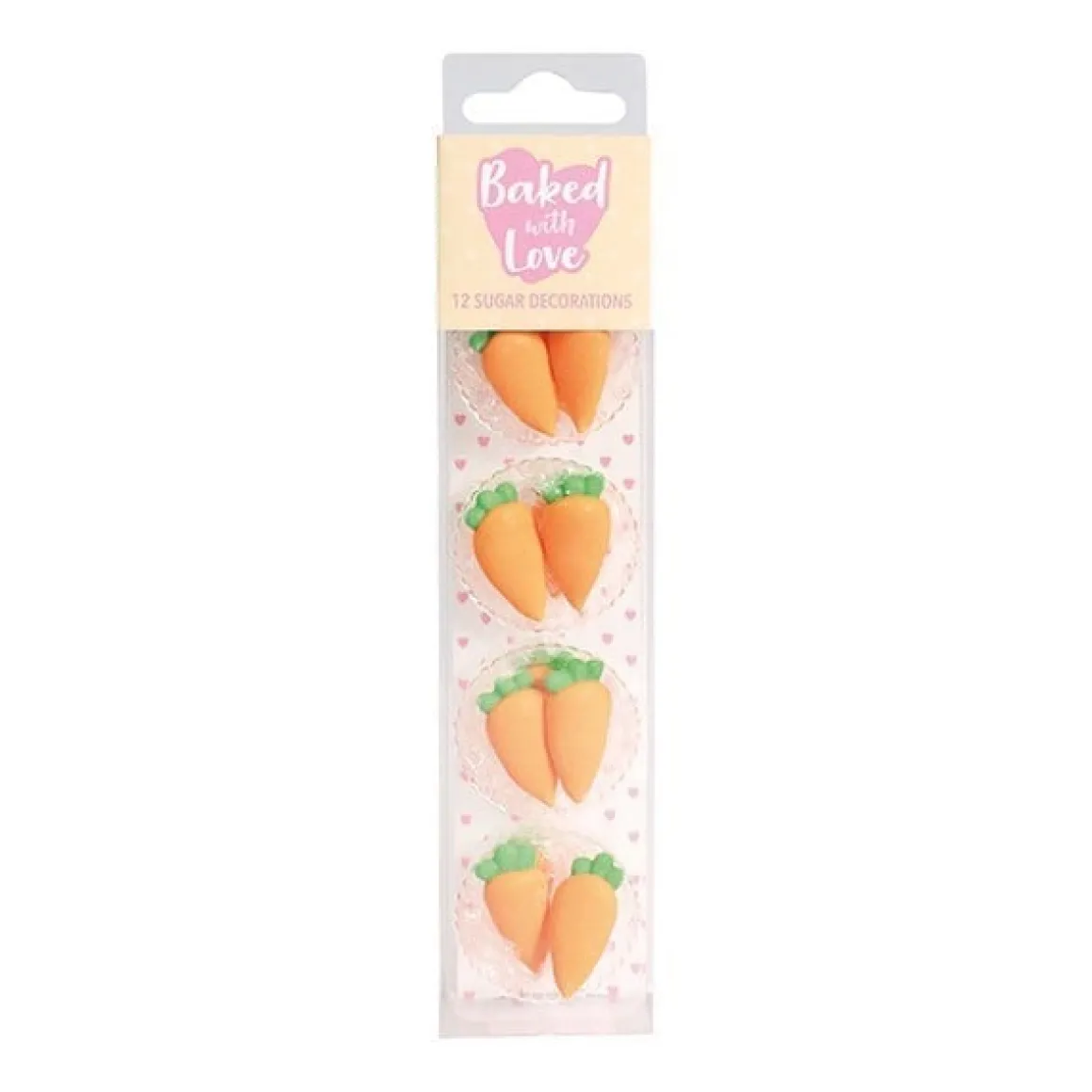 Leuke suikerdecoraties in de vorm van wortels. Perfect voor het decoreren van taarten, muffins en (cup)cakes. Deze wortels zijn leuk te gebruiken als decoratie tijdens het sinterklaas feest als lekkernij voor het paard van sinterklaas.