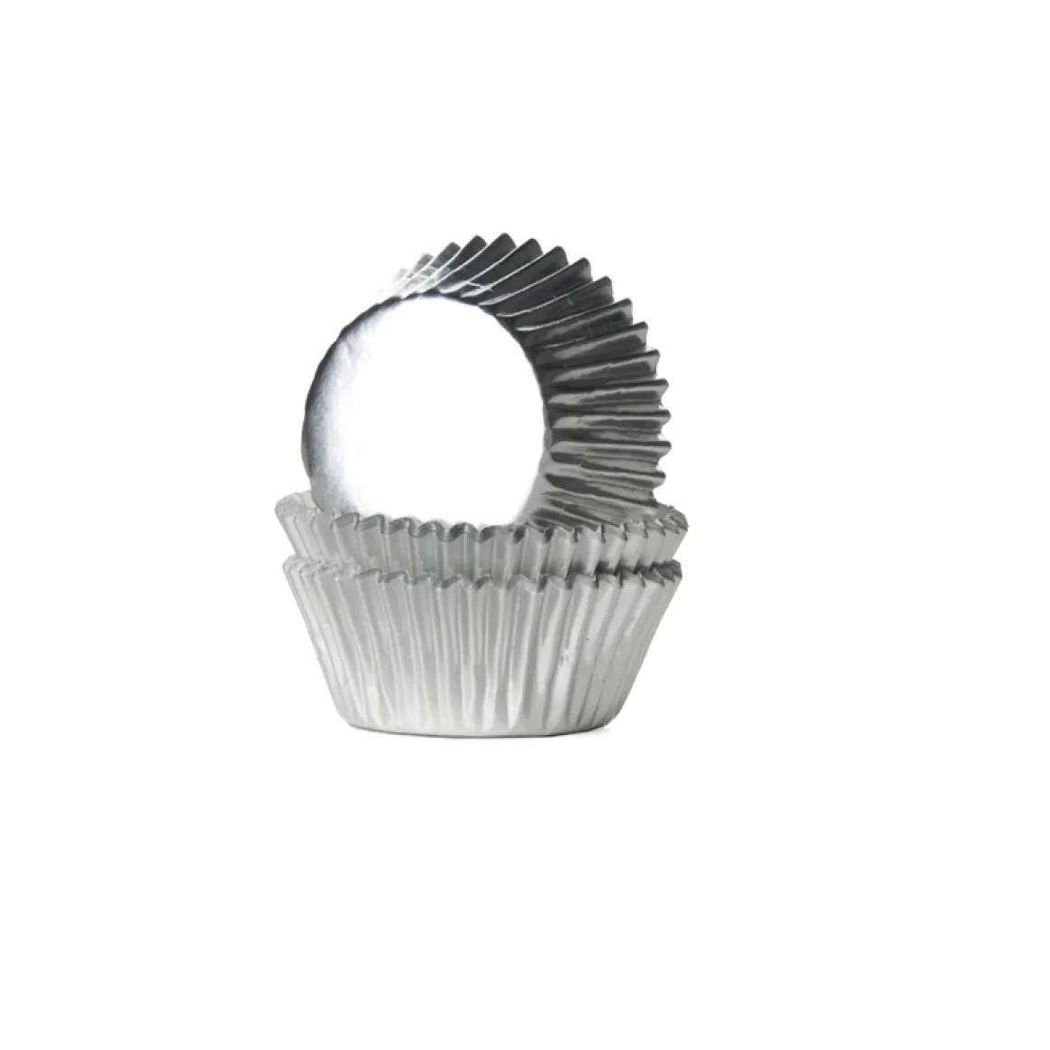 Met deze mini cupcake cups maak je de mooiste mini cupcakes. De vormpjes hebben een super mooie folie zilveren kleur. Een hoogtepuntje van House of Marie is dat de kleur na het bakken mooi blijft en de cups geen smaak afgeven, naast dat de cups niet veranderen van vorm.