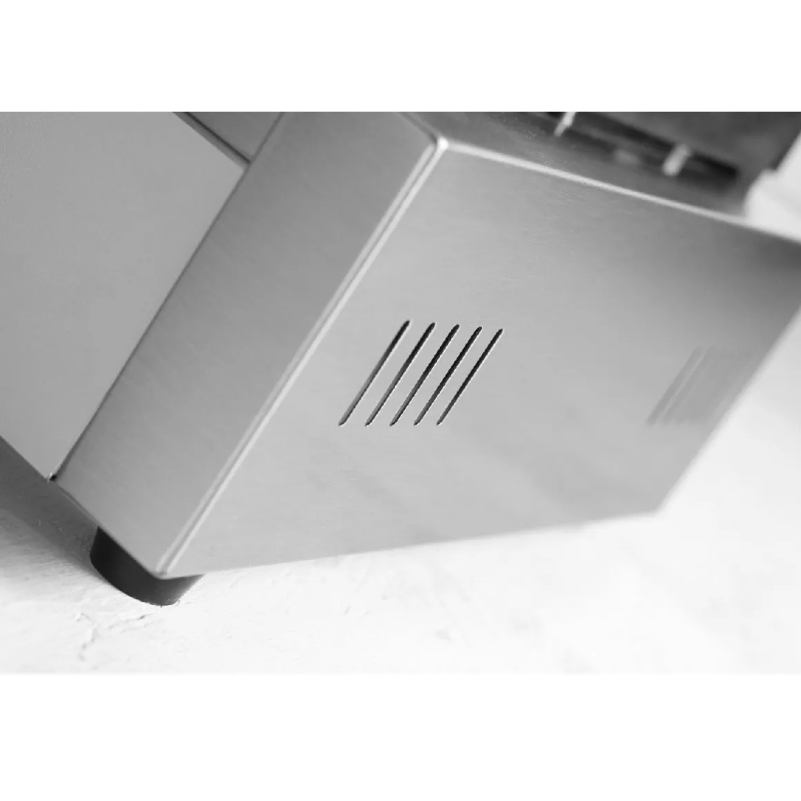 De Hendi Contactgrill Panini heeft boven en onder een geheel geribde plaat. De platen zijn gemaakt van gietijzer dat geëmailleerd is. Met deze contactgrill kun je perfect brood, vlees en groenten te grillen. Het verwarmen gebeurt door middel van krachtige verwarmingselementen, die verwarmen tot 300 graden. Met de thermostaat aan de voorkant stel je de juiste temperatuur in. Er wordt een borstel meegeleverd, waarmee het apparaat eenvoudig te reinigen is. De voorkant van de grill bevat een uitneembare opvangbak die makkelijk te reinigen is.