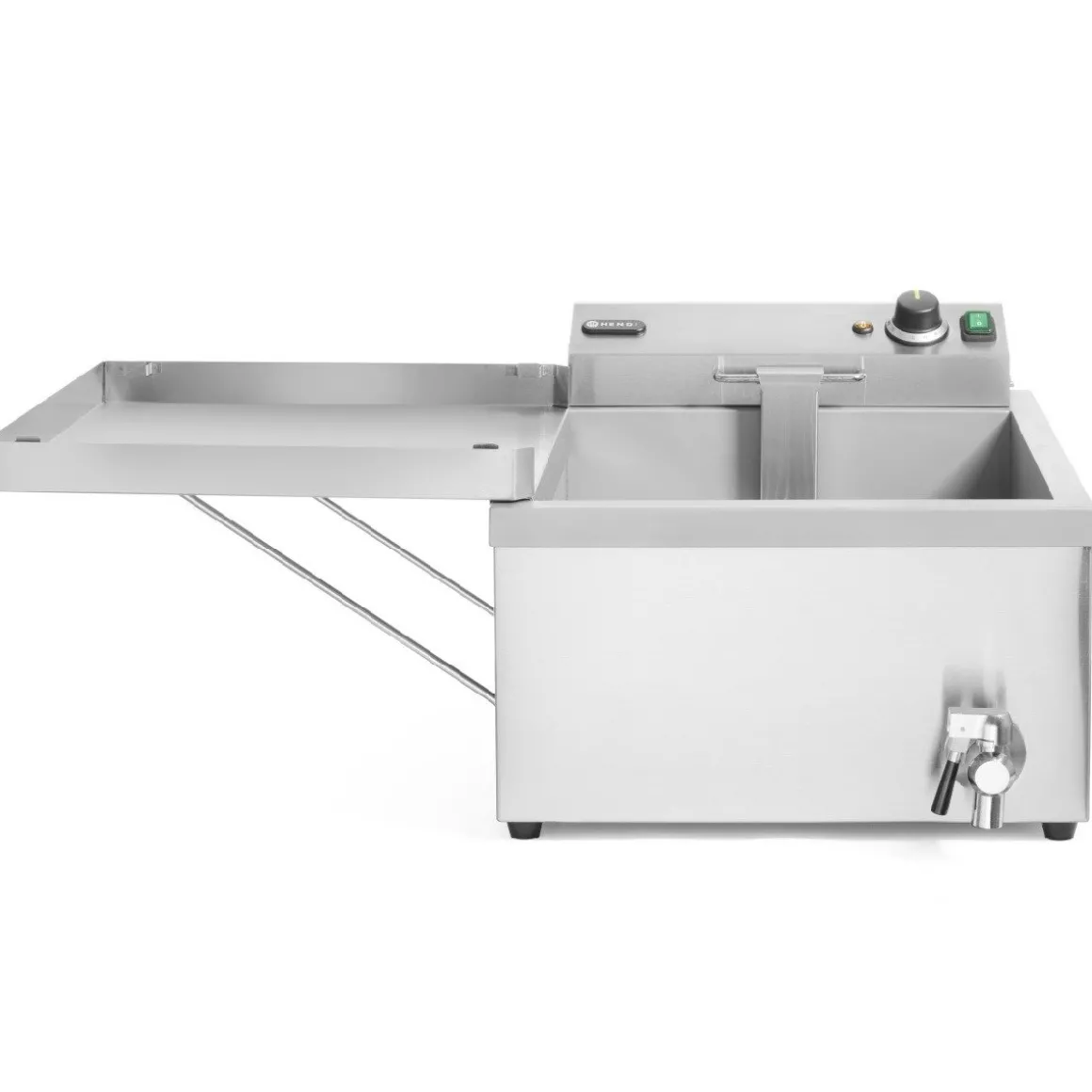 De Hendi Donut Friteuse is perfect voor het frituren van donuts, maar ook voor frituren van beignets, oliebollen en ander deeg. Je kunt deze friteuse intensief gebruiken en er grote hoeveelheden in bereiden. De friteuse wordt geleverd met twee bakroosters, een verwarmingsrooster en een deksel. De deksel kan tevens als lekbak gebruikt worden. Het verwarmingselement schakelt uit bij het verwijderen of bij oververhitting ervan, aan het indicatielampje kan afgelezen worden of het element werkt. Het instellen van de temperatuur kan van 50 °C tot maximaal 190 °C.