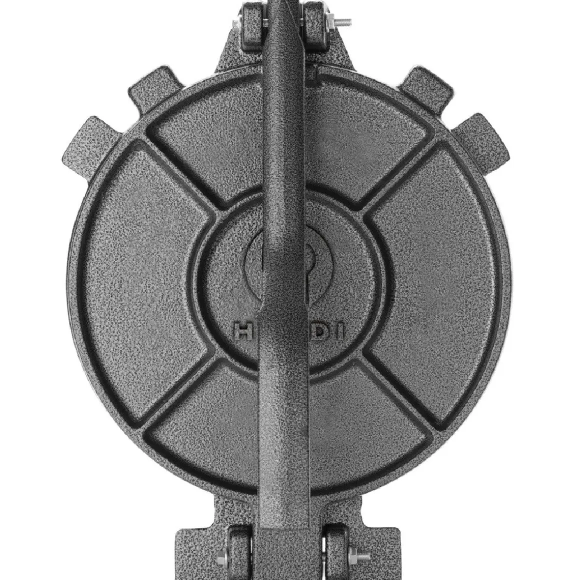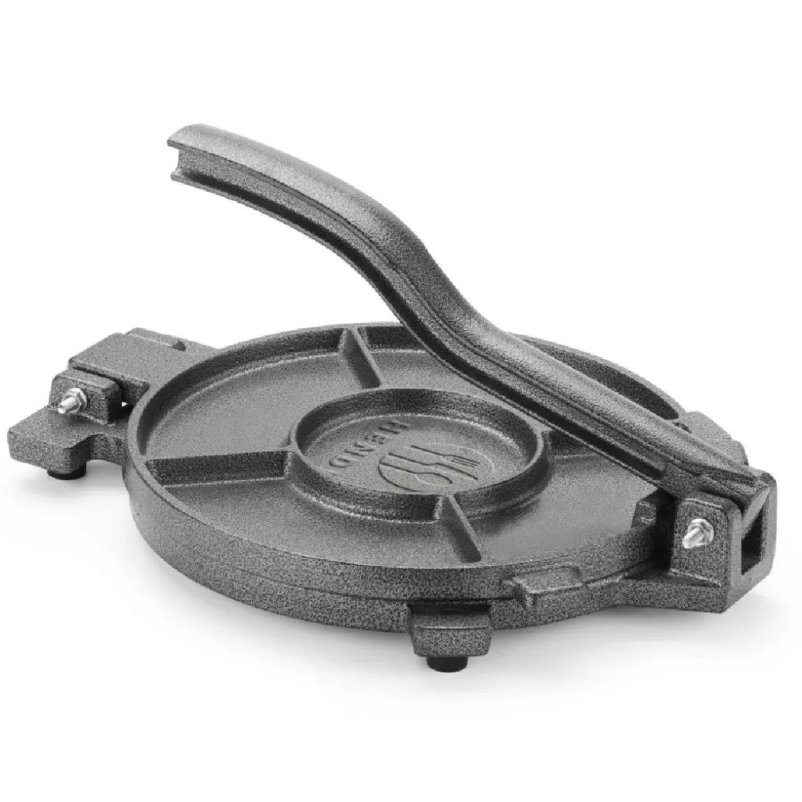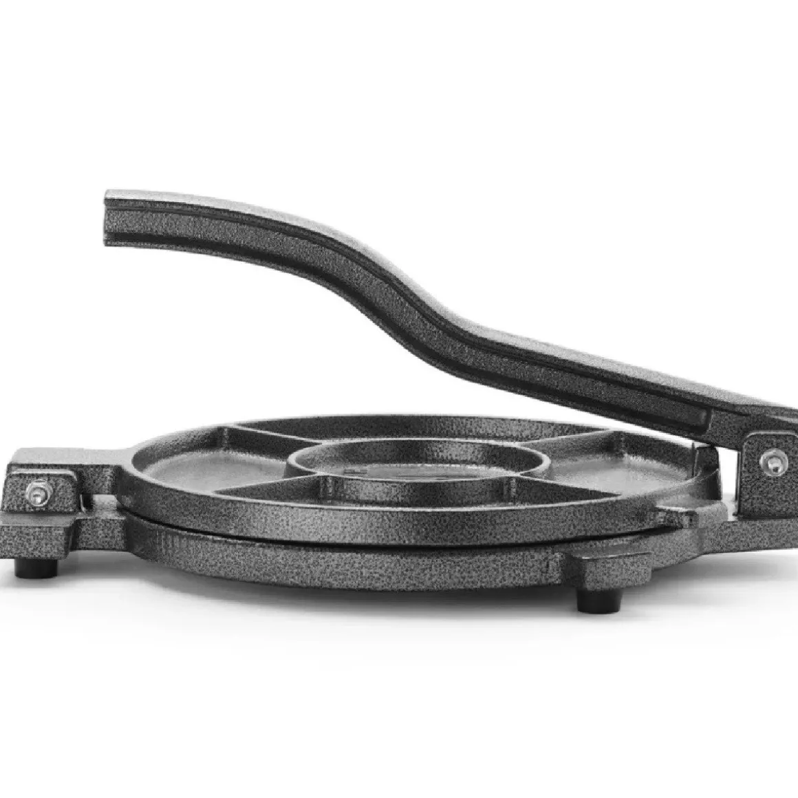 Deze pers is perfect voor het maken van tortilla’s, wraps, roti’s of dumplingvellen. Je legt een deegbol tussen de platen, drukt de hendel naar beneden en het resultaat is een gelijkmatig platgedrukt deeg, klaar om gebakken of gevuld te worden.