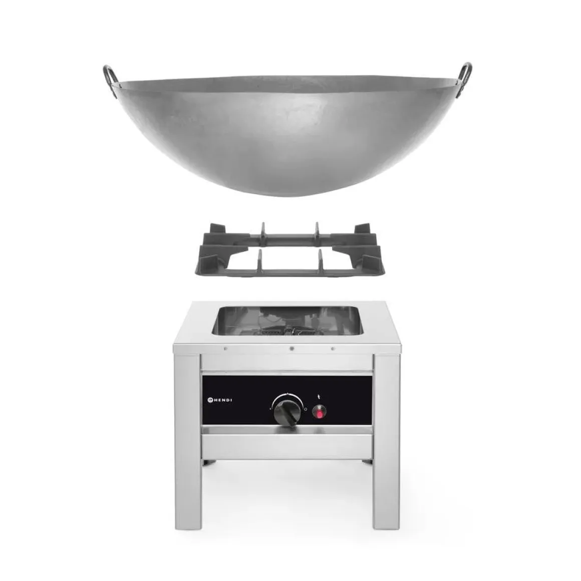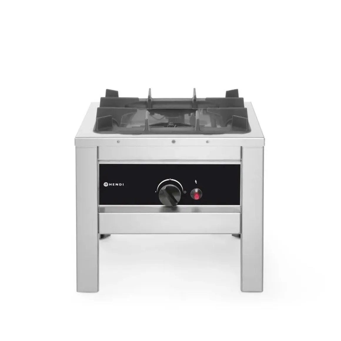 Voor propaan- en butaangas. Extra robuust roestvast stalen frame voor het dragen van zware lasten. Uitgerust met thermokoppel en elektronische ontsteking. Voorzien van geëmailleerde pandrager. Wordt compleet geleverd met gasslang en drukregelaar. Uit te breiden met onderstel (147306), wokring (147207) en wokpan (626504).