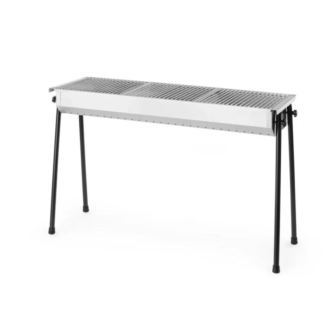 Voorzien van 3 roosters van 345×345 mm elk. Binnenmaat bak: 1070x350x(H)max110mm. Dubbele bodem voor asverzameling.