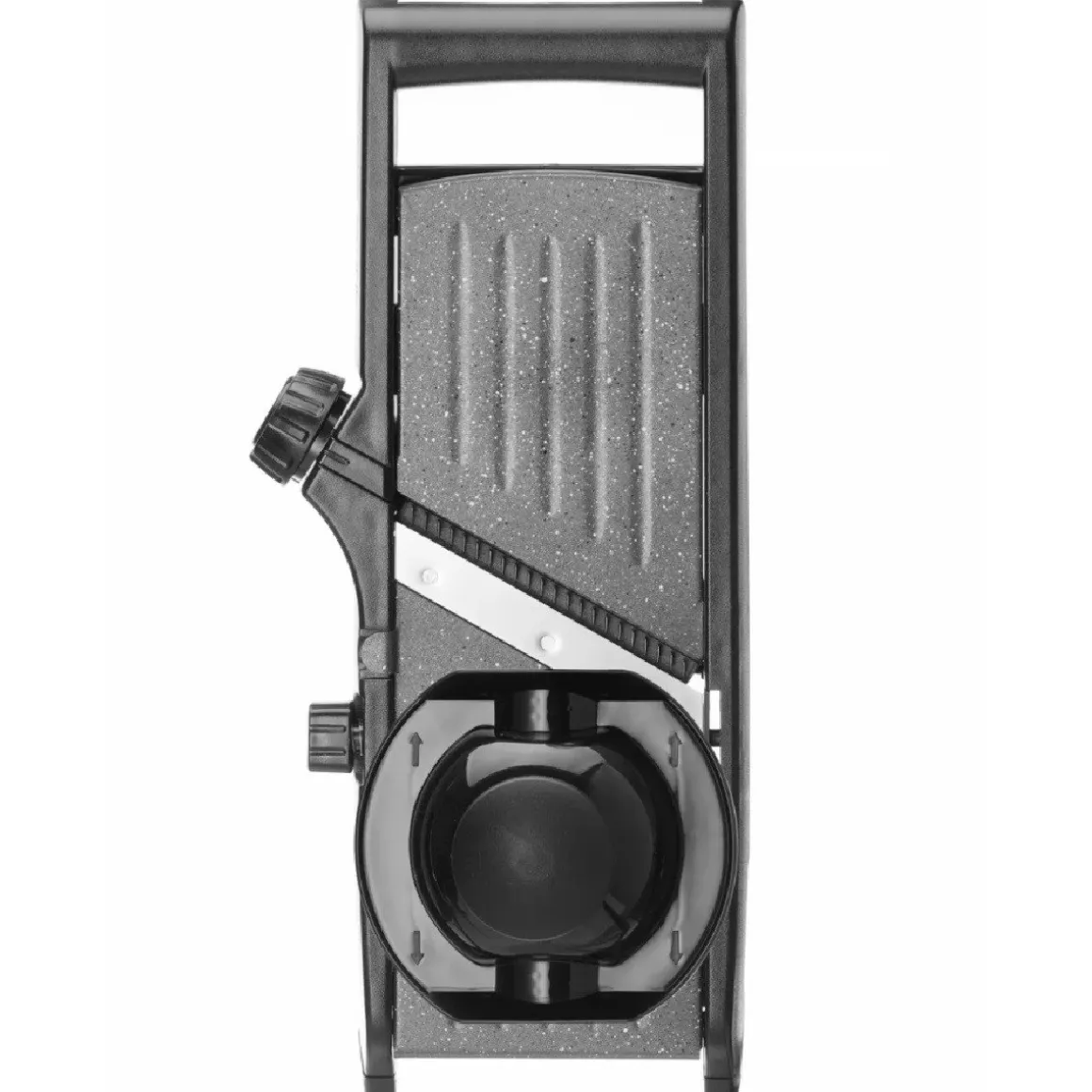 De Hendi Japanse Mandoline is een handige keukentool voor het snijden van groente en fruit. Door de scherpe messen en de non-stick coating snijd je etenswaren snel en makkelijk. Verder kun je de groente op diverse diktes snijden en met 2 verschillende snijwijzen. Zo kun je bijvoorbeeld schijfjes of julienne snijden, dit kan van 0,5 mm tot een dikte van 9 mm. Door de handige meegeleverde groentehouder heb je een prima grip en worden je vingers beschermd. Ideaal voor onder ander komkommer of wortels.