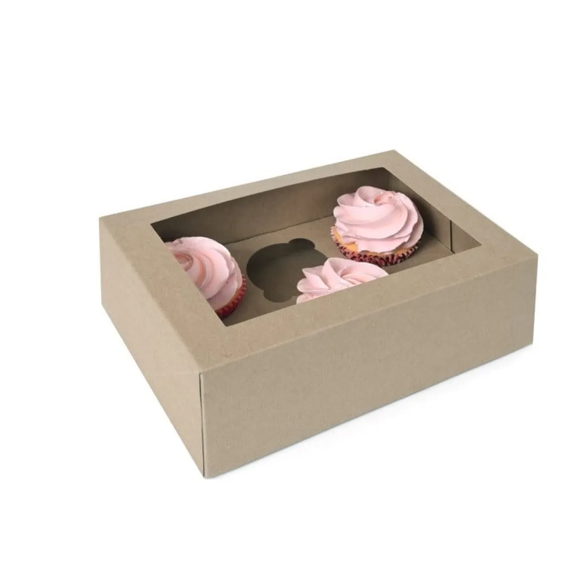 De kraft cupcake dozen zijn gemaakt van gerecycled, FSC en composteerbaar karton (ECO), het bevat geen kunststof. De doos kan na gebruik bij het papierafval. Het venster is een PLA-venster (biologisch afbreekbaar, gemaakt van zetmeel).