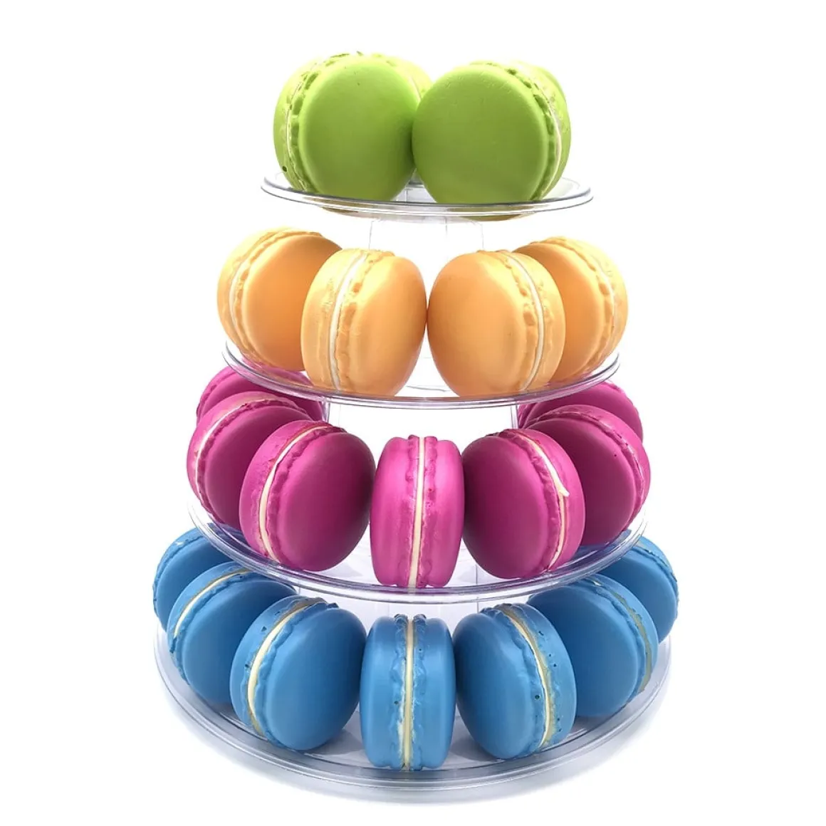 Presenteer je macarons met deze leuke plastic display. De standaard is geschikt voor ca. 45-48 macarons en bestaat uit 4 etages. Je kan de etages eventueel ook afzonderlijk van elkaar gebruiken (2 t/m 3 etages). De standaard is gemaakt van een licht PVC materiaal en is NIET vaatwasserbestendig.