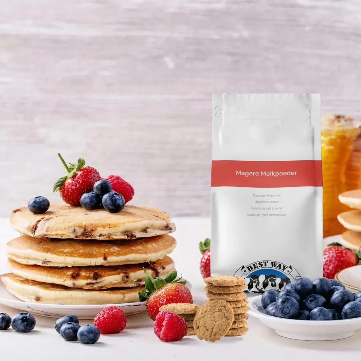 Met de Magere Melkpoeder (Extra Goed Oplosbaar) 1kg heb je altijd melk in huis. Deze poeder is lang houdbaar en makkelijk in gebruik. Bovendien kun je deze op verschillende manieren toepassen. Natuurlijk kun je deze als ‘normale’ melk gebruiken. Voor 1 liter melk, meng je dan 100 gram melkpoeder met 1 liter water. Daarnaast kun je de poeder gebruiken in verschillende recepten, zoals in desserts, taarten, gebak of chocolade.