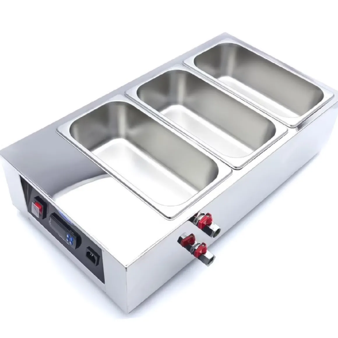 Met de Maxima Chocoladesmelter 3x 1/3GN Professioneel smelt je chocolade au-bain marie, waardoor chocolade niet verbrand. Dit apparaat zorgt ervoor dat chocolade gelijkmatig smelt. De chocoladesmelter heeft 3 GN bakken, in elk past ongeveer 4 kilogram chocolade. Dit maakt het apparaat perfect voor ijssalons, chocolaterieën en vele andere horeca ondernemingen.