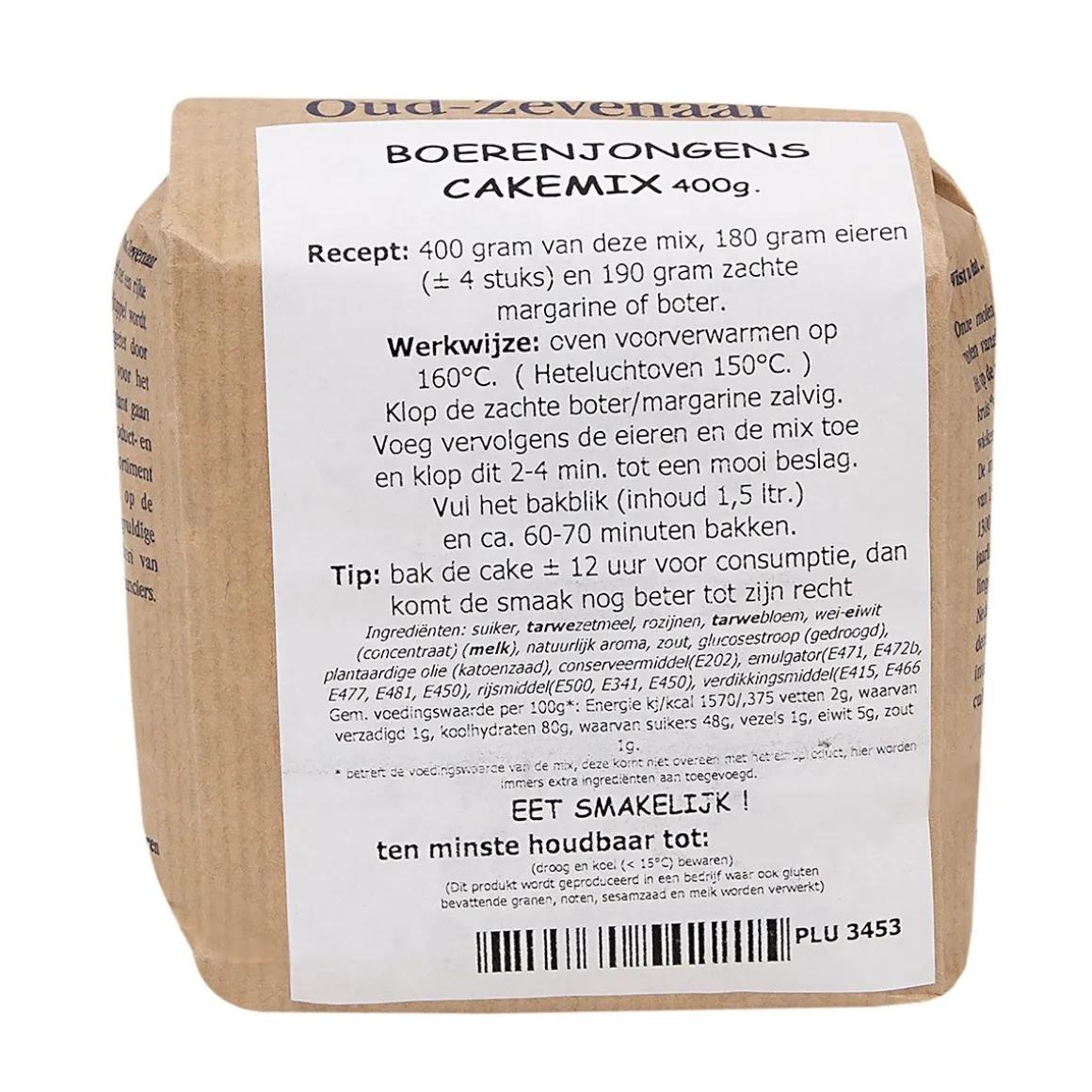 Gek op rumrozijnen of boerenjongens? Dan is deze unieke Molen de Hoop Boerenjongenscakemix echt is voor jou! De cake is met deze mix heel simpel te maken; je hebt alleen nog wat eieren en boter nodig. Je kunt de cake helemaal af maken door bij het serveren een toef slagroom op je cake te spuiten. Dat is toch puur genieten!