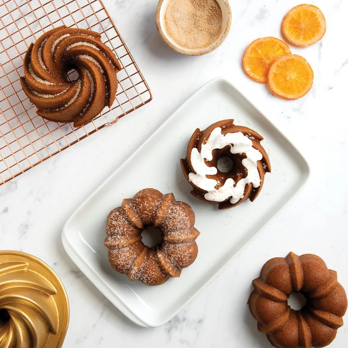 Breng je bakcreaties naar een hoger niveau met de Nordic Ware Classic Bundt Duet Bakvorm, een prachtig vormgegeven en veelzijdige bakvorm waarmee je twee elegante, perfect geportioneerde cakejes bakt. Ideaal voor wie houdt van verfijnde presentatie én smaak!