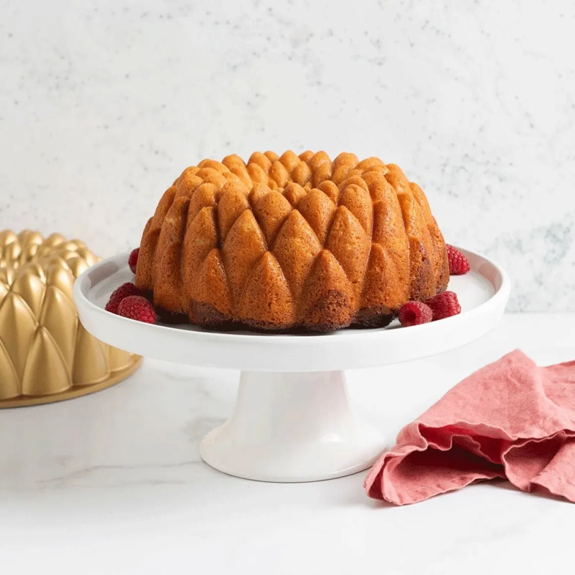 De nieuwste bakvorm van Nordic Ware: Kaleidoscope. Met haar verfijnde geometrische patroon tover je moeiteloos een waar kunstwerk uit de oven. Elke taart krijgt een verbluffend 3D-effect dat doet denken aan een sierlijk geslepen kristal – perfect voor feestelijke gelegenheden of als verrassing voor je gasten.