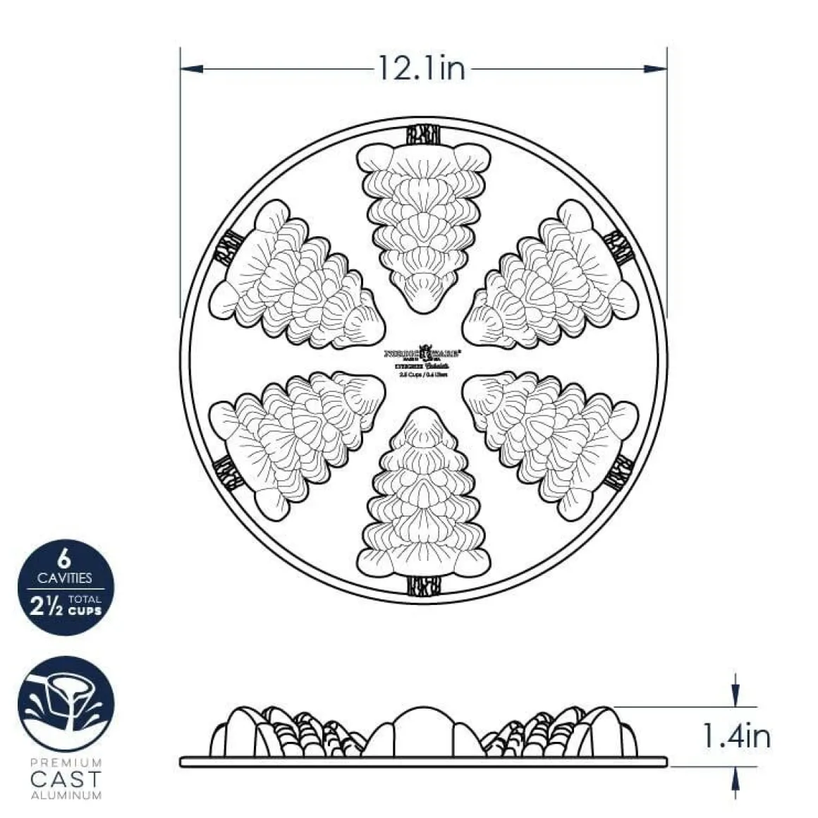Maak je tafel voor de kerstdagen helemaal compleet met de Nordic Ware Sparren Bakvormen Rond. Met deze bakvorm maak je levensechte kleine sparren, om op te eten. Je kunt met de sparren en prachtig landschap creëren of gebruiken ter decoratie bij een peperkoekhuis. Na het bakken kun je de bomen decoreren met decoreersneeuw, voor een extra winters effect.
