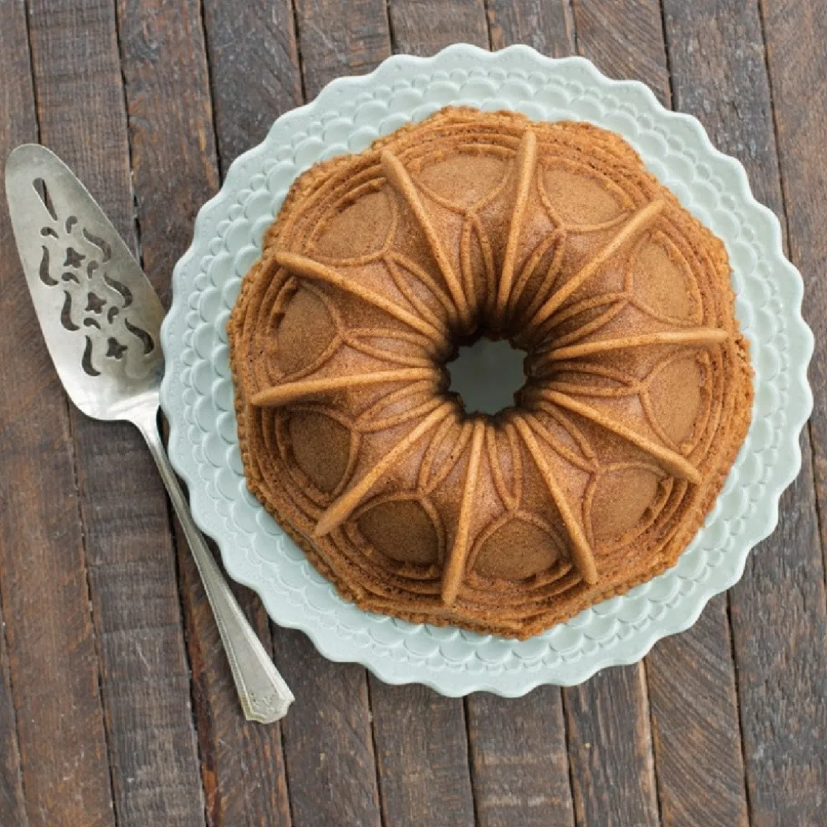 De Nordic Ware Vaulted Cathedral Tulband Bakvorm heeft gotisch geïnspireerde ontwerp. De vorm doet denken aan kathedraalbogen en geeft elke cake een indrukwekkende structuur. De vorm is vervaardigd uit gegoten aluminium voor optimale warmtegeleiding.