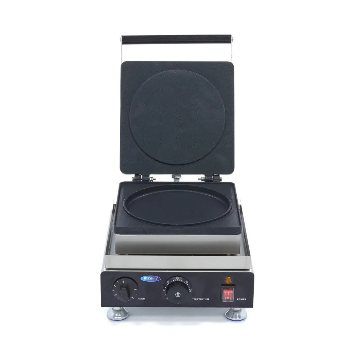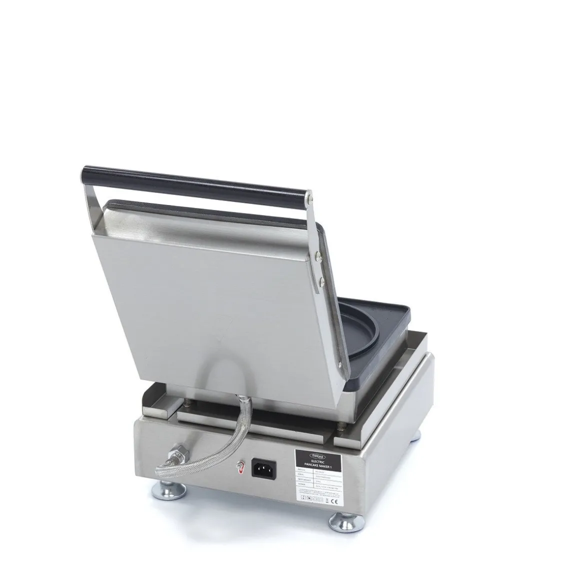 Eenvoudig en snel mooie, ronde en natuurlijk overheerlijk pannenkoeken bakken doe je natuurlijk met een professionele pannenkoekenmaker. Deze pannenkoekenmaker is van zeer hoge kwaliteit en zeer geschikt voor professioneel gebruik. Je kunt de bakplaat gebruiken om snel pannenkoeken te bakken voor bijvoorbeeld op markten en/of braderieën. De bakplaat wordt geleidelijk aan warm, waardoor de pannenkoek gelijkmatig gaar wordt, door de aluminium bakplaat. Door de handige lekbak heb je geen last meer van gemors op de ondergrond, waardoor je een stuk sneller bent met schoonmaken. De buitenkant van de pannenkoekenmaker is gemaakt van RVS materiaal, waardoor schoonmaken kinderspel wordt.