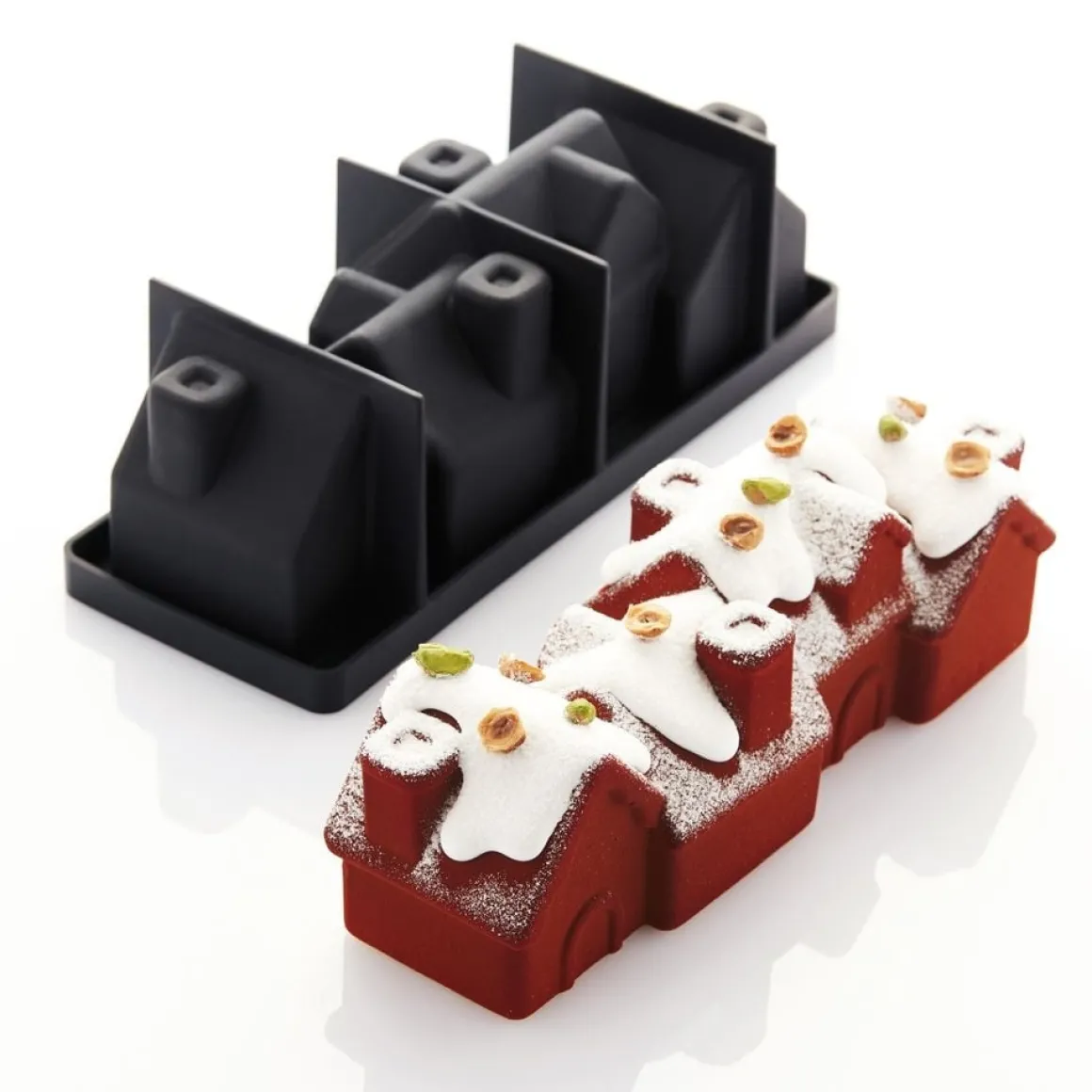 Maak een prachtige creatie in de vorm van een “Chalet” met de mold van het merk Pavoni. Maak een dorp/camping/kleine stad of andere creatie van cake, biscuitdeeg of een ander soort deeg en laat niet alleen de mond genieten maar ook het oog. Na het bakken kun je het figuur decoreren met suikerbakkerspoeder, botercrème, glazuur of een andere heerlijke topping om het feest helemaal compleet te maken. De mold is ontwikkeld in samenwerking met World Chocolate Master Frank Haasnoot.