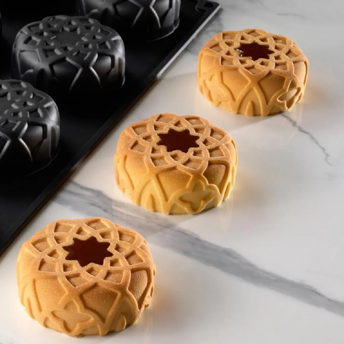 Deze vorm is perfect voor het creëren van elegante gebakjes, mousses, semifreddo of ijsgerechten. De reliëfstructuur maakt hem ook geschikt voor velvet sprays of glazuren, waarbij elk detail zichtbaar blijft.