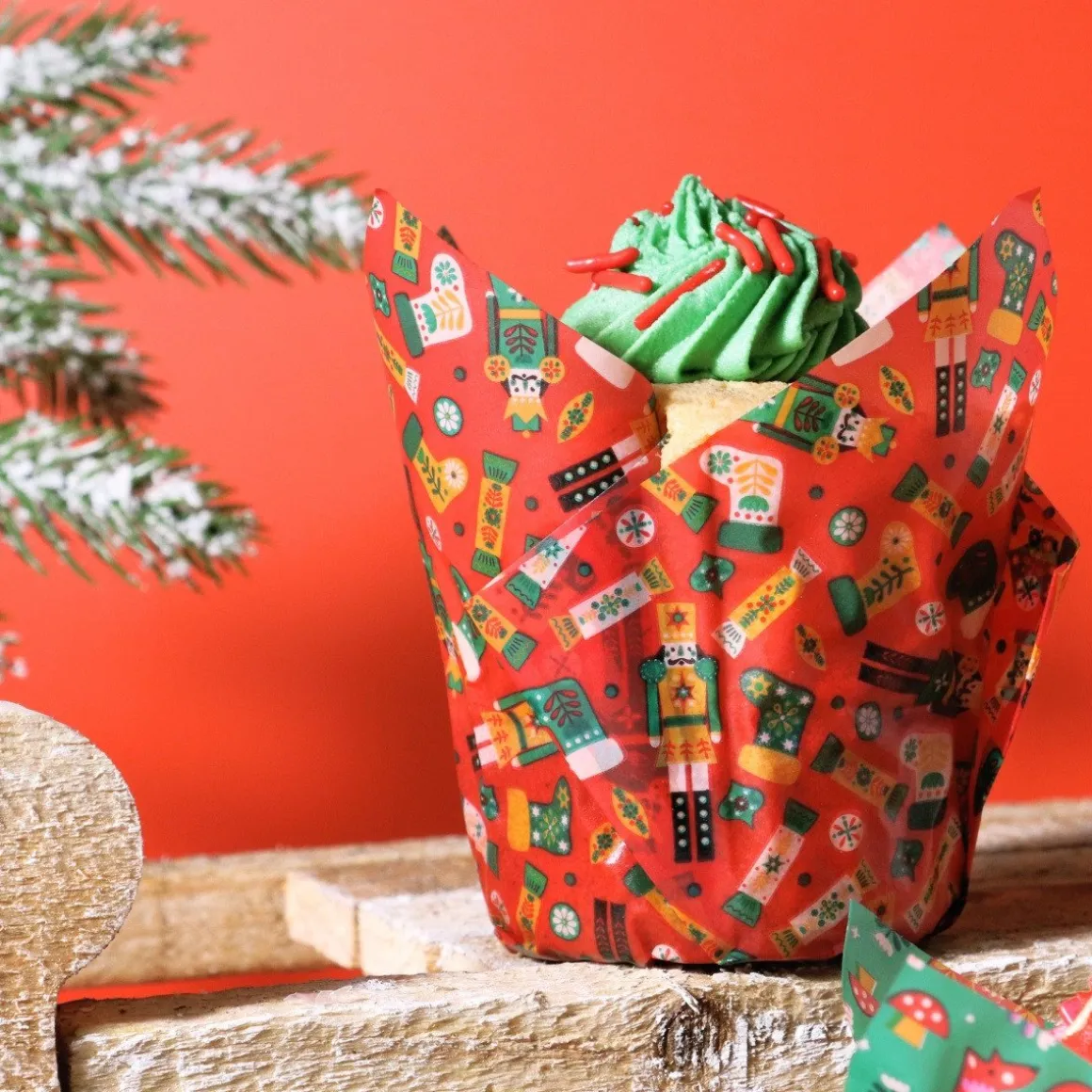 Maak je feestelijke muffins en cupcakes nog leuker met dePME Muffin Cups Betoverend Bos 24st. De set bestaat uit 24 vormpjes in 2 verschillende ontwerpen met patronen van notenkrakers, renderen, kerstbomen en meer! De vormpjes zijn gemaakt van vetvrij bakpapier zodat er geen vet doorheen lekt.