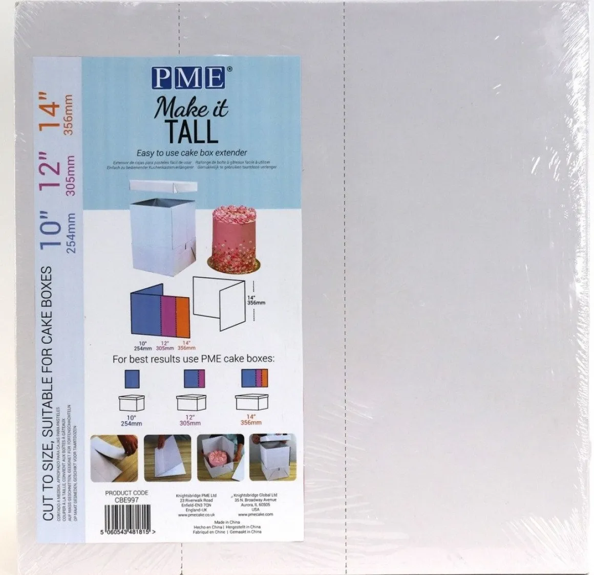 Met dit handige hulpmiddel van PME maak je je taartdoos eenvoudig hoger. Dit verlengstuk (ook wel extender genoemd) is geschikt voor de volgende formaat dozen: