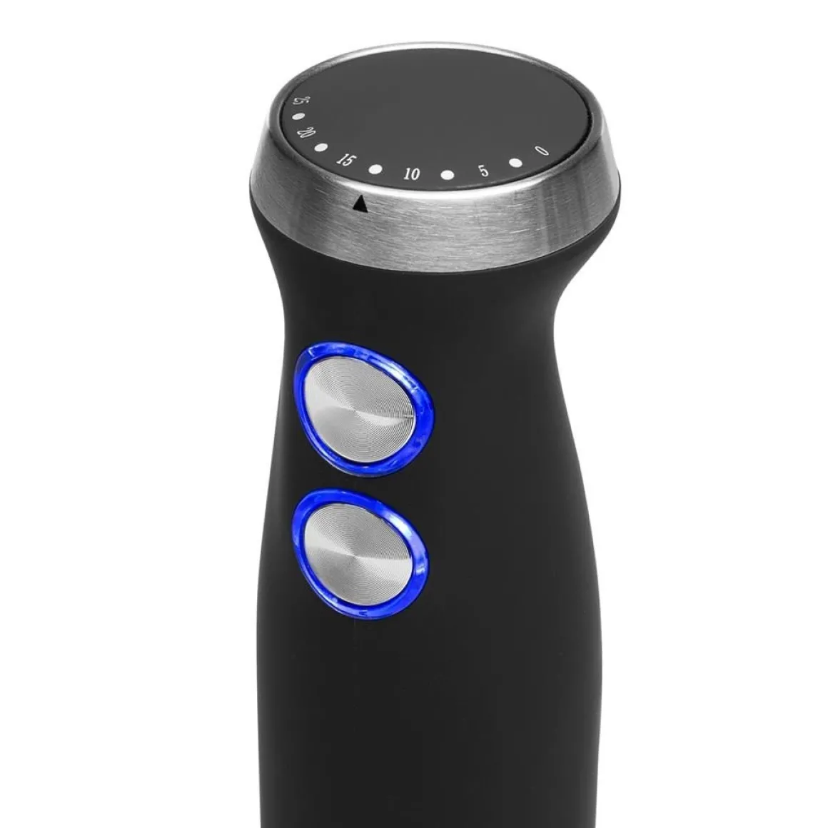 De bediening is gemakkelijk door middel van het rubberen handvat met daarin 2 instellingsknoppen. De snelheid lees je af van de indicatielampjes bovenop het handvat.