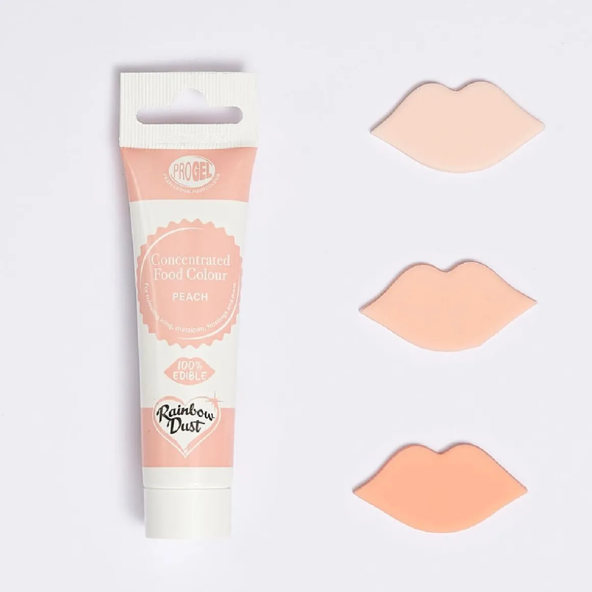 De RD Kleurstof ProGel Peach 25 gram is een zachte perzikkleur waarmee je taarten, cupcakes, crèmes en zelfs fondant een mooie perzikkleur kunt geven. Voeg steeds een beetje van de kleurstof toe, totdat je de gewenste kleur hebt bereikt.