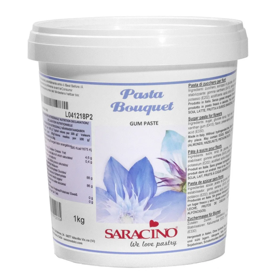 De modelling paste van het merk Saracino is van professionele kwaliteit. Deze modelleer fondant is speciaal voor het maken van eetbare gumpaste bloemen! Het dient erg dun uitgerold te worden om realistische bloemen te kunnen maken. De Bloemen Modelling Paste is elastisch en vertoont niet of nauwelijks scheuren/cracks. De pasta wordt aanvankelijk iets harder tijdens het vormen van de bloemen, maar droogt niet onmiddelijk uit, waardoor je altijd nog het e.e.a. kunt corrigeren. Het heeft een licht vanille aroma en smaak en kan eenvoudig worden gekleurd met klerustof gel of poeder.