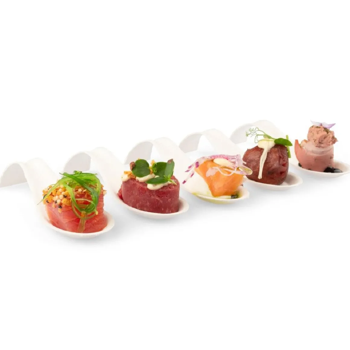 De Senza Suikerriet Amuselepel Boog 12,3×4,2×2,7cm 40st is geweldig voor het serveren van verfijnde lekkernijen en is daarbij ook nog eens milieuvriendelijk. Een ideaal alternatief voor wegwerpplastic. Op het ronde gedeelte kun je de lekkernij serveren en de boog is handig voor het vastpakken van het hapje.