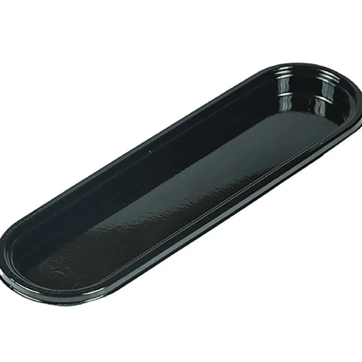 De Silikomart Gebakschoteltje Eclair Zwart 14×3,2cm 100st is perfect om jouw verfijnde gebakjes op te presenteren! Uiteraard ideaal om allerlei soorten eclairs op te dienen, maar ook geschikt voor andere langwerpige baksels. Leuk om gebakjes, chocolaatjes of desserts op te serveren.