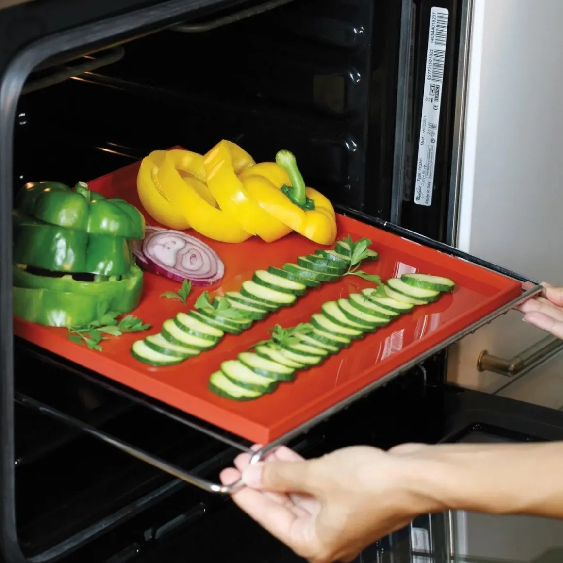 Perfect om een cakerol te bakken, maar ook om hartige gerechten op te beiden. Overigens kun je de bakmat niet alleen in de oven gebruiken, maar geschikt voor in de koelkast of vriezer.
