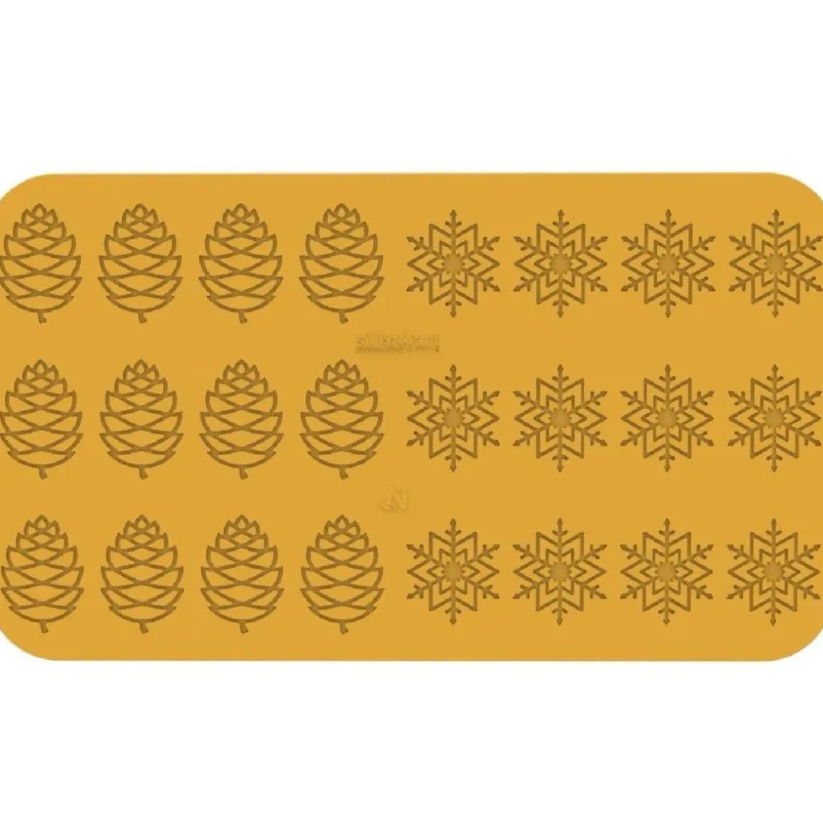 De Silikomart Siliconen Mat Inverno (24x) 6,7×4,7cm is fantastisch om gedetailleerde decoraties mee te maken. Het is mogelijk om met deze mat dennenappels en sneeuwvlokken te creëren. Geschikt voor het maken chocoladedecoraties of decoraties van pâte à cigarette. Pâte à cigarette is op basis van onder andere eiwit en boter en aan dit beslag kun je ook prima een kleur kan toevoegen.