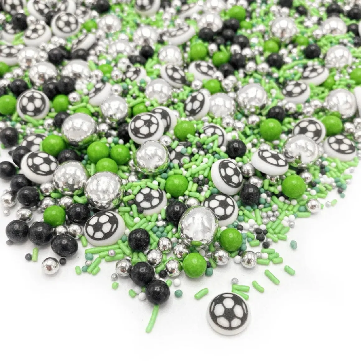 De Sprinkles Football Champion 500g zijn geweldig voor alle voetbalfans. Deze mix staat helemaal in het teken van voetbal! Zo vind je in de mix kleine voetballen aangevuld met allerlei figuren in groene, zilvere en zwarte kleuren. Perfect om een voetbal thema aan allerlei baksels te geven.