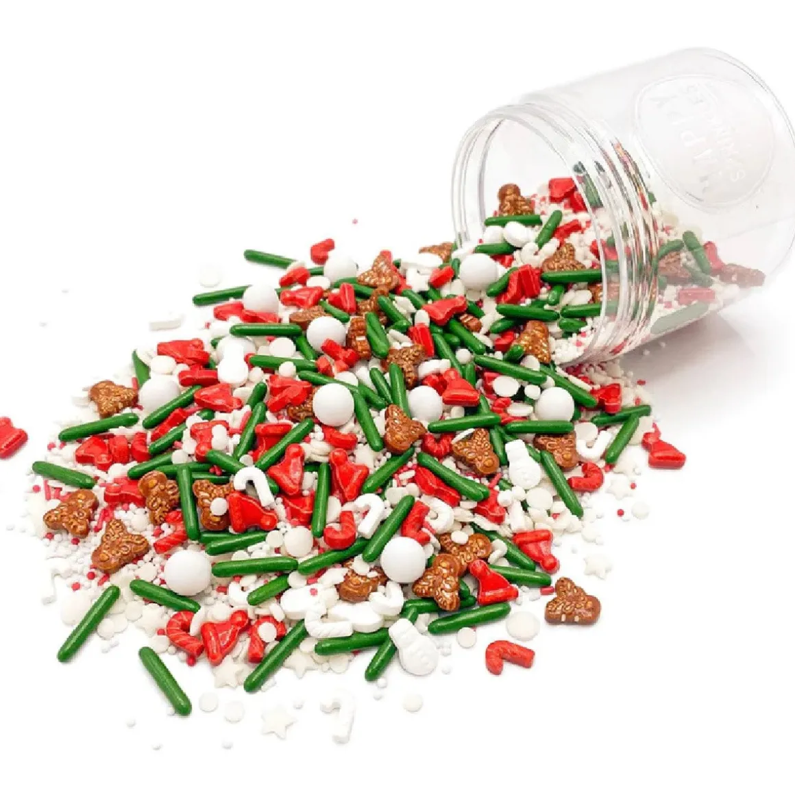 Deze leuke Sprinkles Xmas Vibes 90g geven direct een kerstgevoel. De sprinkles bestaan uit rendieren, zuurstokken, sneeuwpoppen en kerstmutsen. Uiteraard hebben de strooisels mooie kerstkleuren, namelijk: groen, rood, wit en bruin/goud. Decoreer met deze sprinkles de door jouzelf gebakken koekjes, cupcakes, taarten en desserts tijdens de feestdagen. Het potje heeft een inhoud van 90 gram.
