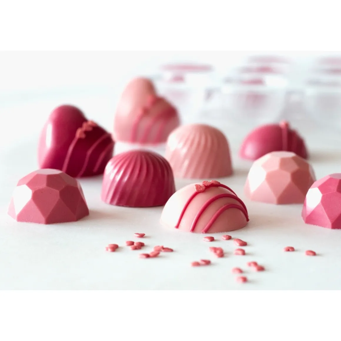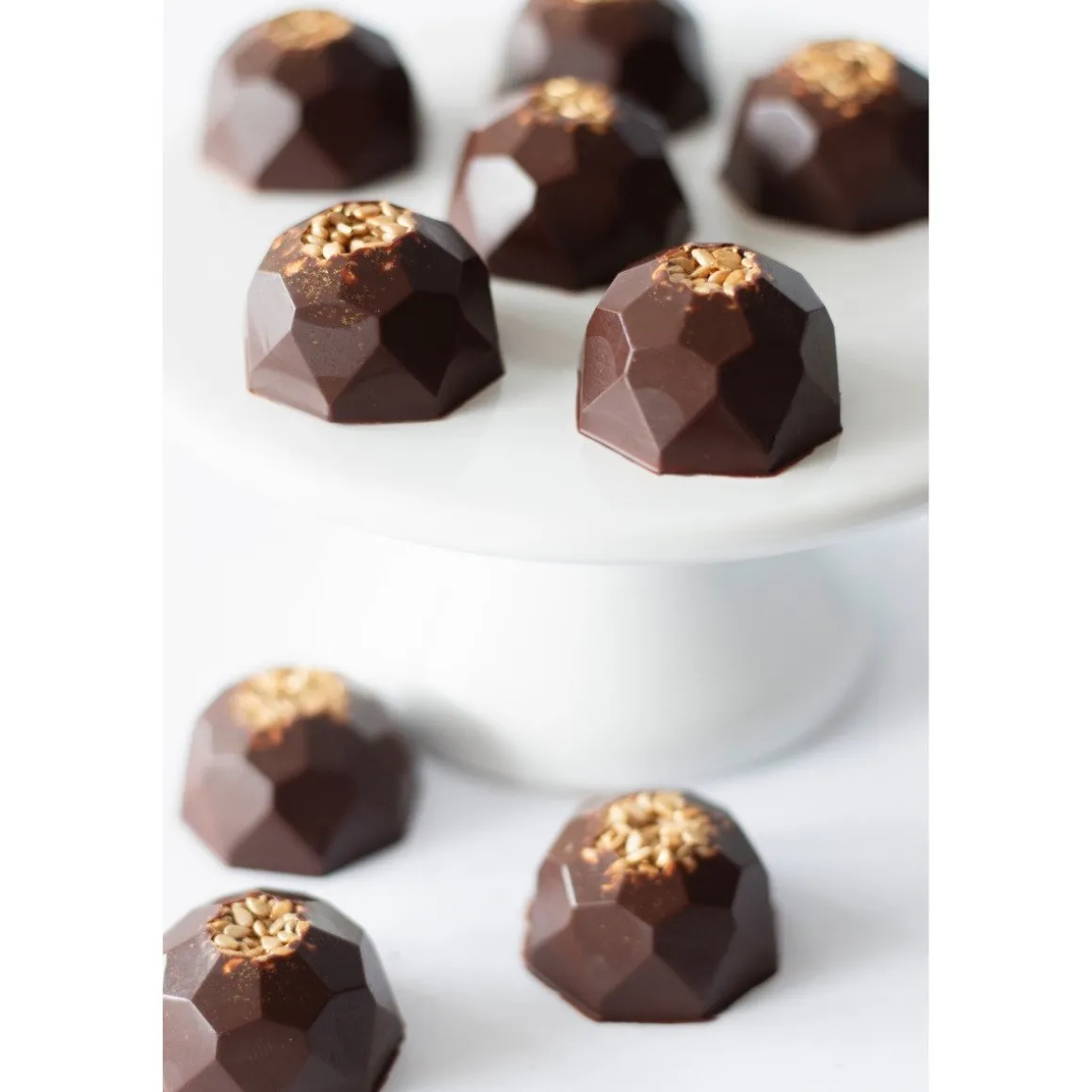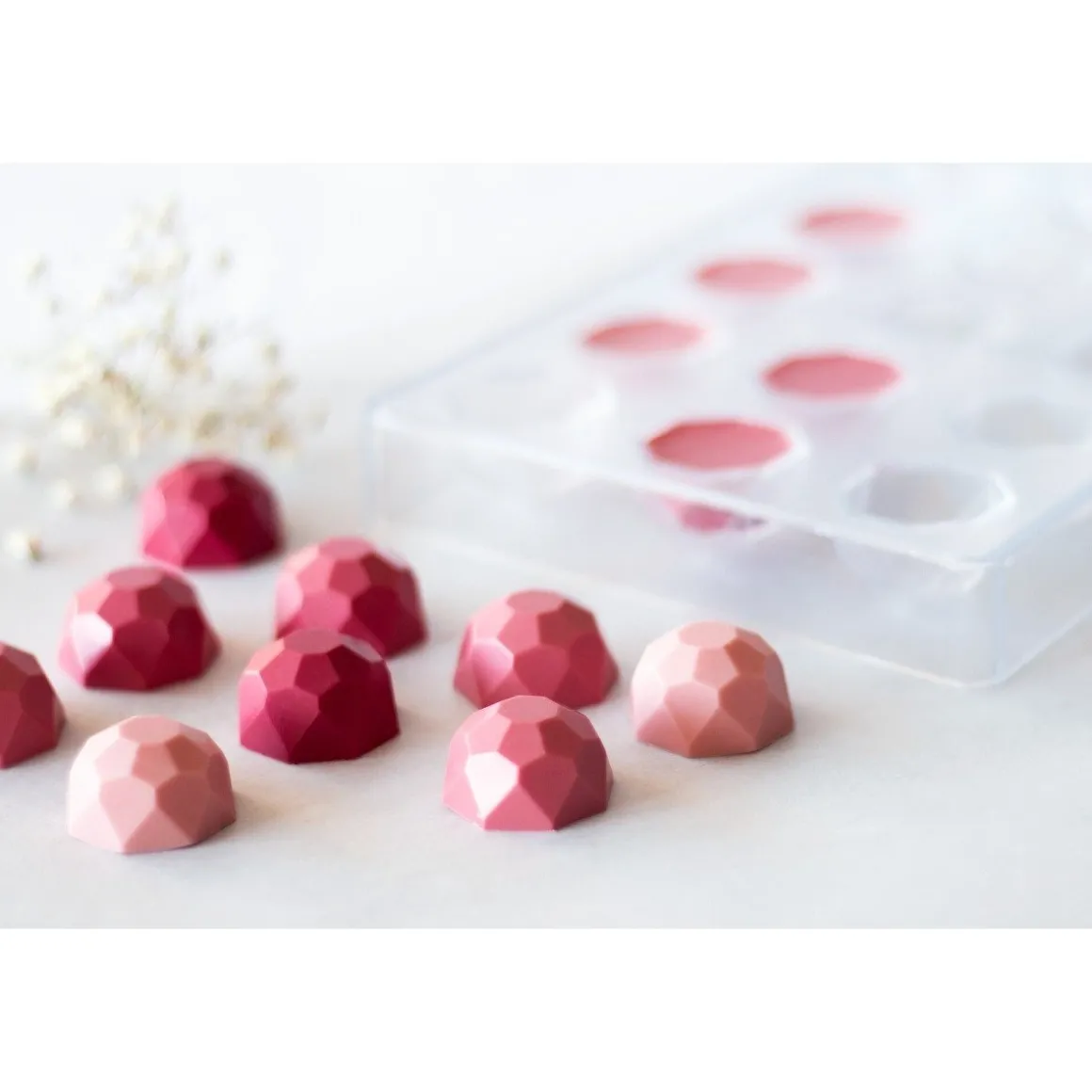 Met behulp van de Städter Bonbonvorm Diamant (21) Ø26mm maak je perfecte bonbons in een diamant vorm. Lekker met allerlei soorten chocolade zoals: wit, puur, gold of ruby. Je kunt massieve chocolaatjes maken, maar ook heerlijk om bonbons met vullingen te creëren. Vul de bonbons bijvoorbeeld met hazelnoot-, amandel- of pistachevulling.